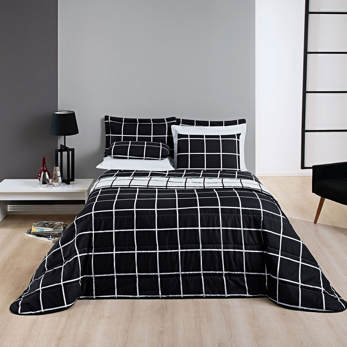 Cobre Leito Casal Austin em Matelassê 200 Fios e Aba Americana - PretoSua cama de casal com visual de revista. Cobre Leito Austin com a sofisticação do matelassê e o charme da aba americana. Estilo e conforto para o dia a dia. 1 Cobre leito dupla face 2,40m x 2,20m2 Porta travesseiros 80cm x 55cm Composição:Percal...CASAL a partir de