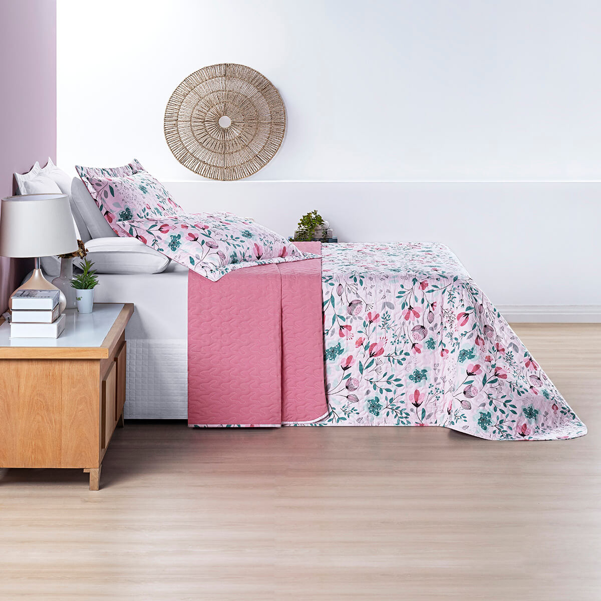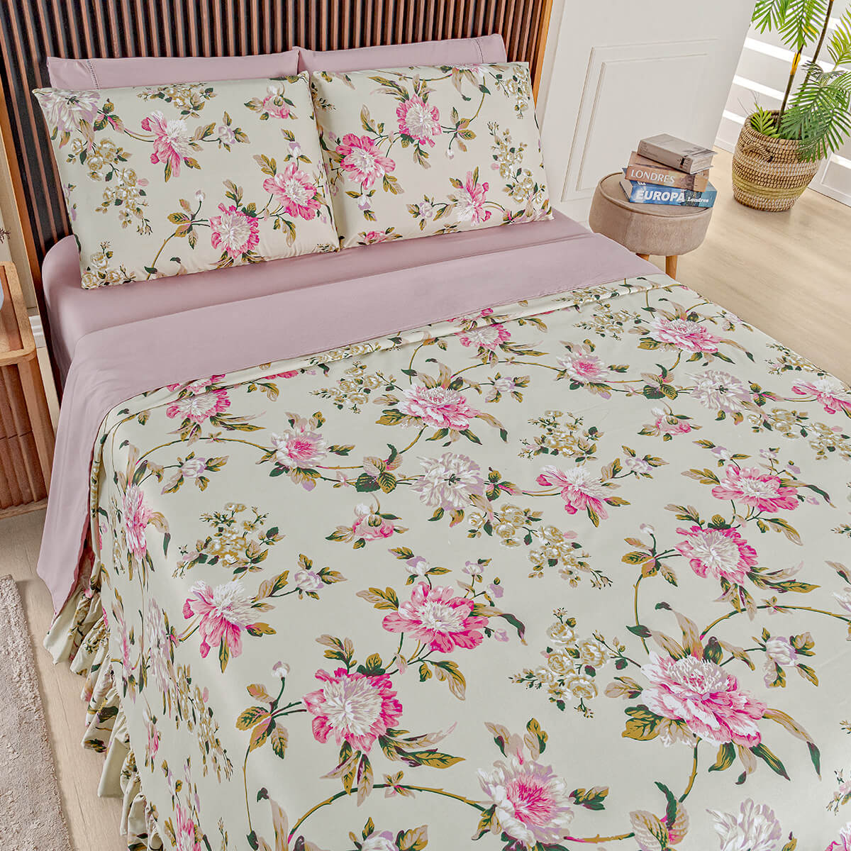 Kit Coordenado Queen Nina 7 Peças 400 Fios: Um Jardim de Rosas na sua Cama - NinaKit Coordenado400 FiosTransforme seu quarto em um refúgio romântico com o Kit Coordenado Queen Nina. Conjunto de 7 peças com colcha estampa floral e jogo de lençol liso.Colcha 3 Peças1 Colcha 2,60m x 2,40m2 Porta travesseiros 70cm x 50cmComposição:Percal 400 Fios | 100% PoliésterLençol Completo 4...QUEEN a partir de
