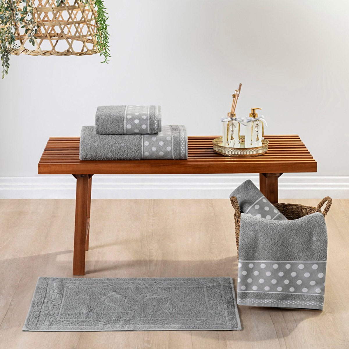 Jogo de Banho Petit Poá 5 Peças Charme e Conforto para seu Banheiro - GranitoMais VendidosToque MacioTransforme seu banho em um ritual de conforto. Jogo de Banho Petit Poá 5 peças em 100% algodão 450g/m² para máxima maciez e absorção. O charme do poá para seu banheiro. 02 Toalhas de Banho 1,50m x 75cm 02 Toalhas de Rosto 80cm x...