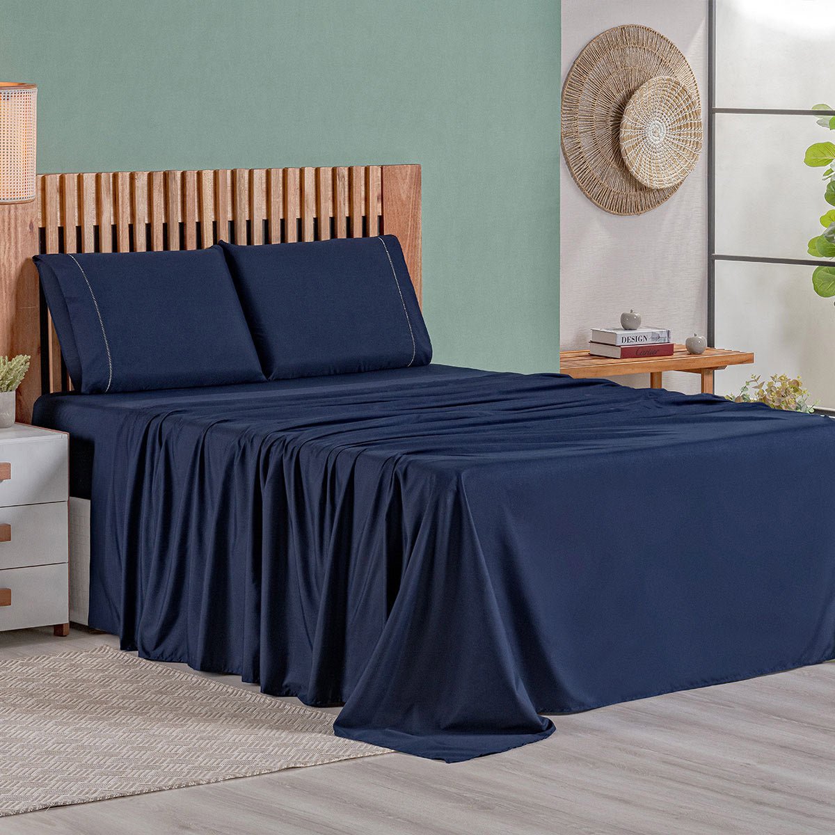 Jogo de Lençol Emilly King Elegância em Cores Vivas 4 Peças - Marinho400 FiosToque MacioSofisticação e personalidade para sua cama king. Jogo de Lençol Emilly 4 peças com cores que não desbotam e o elegante acabamento em ponto palito. Peça já! 01 Lençol de cima 2,80m x 2,40m01 Lençol de baixo com elástico 2,03m x 1,93m x 40cm...KING a partir de