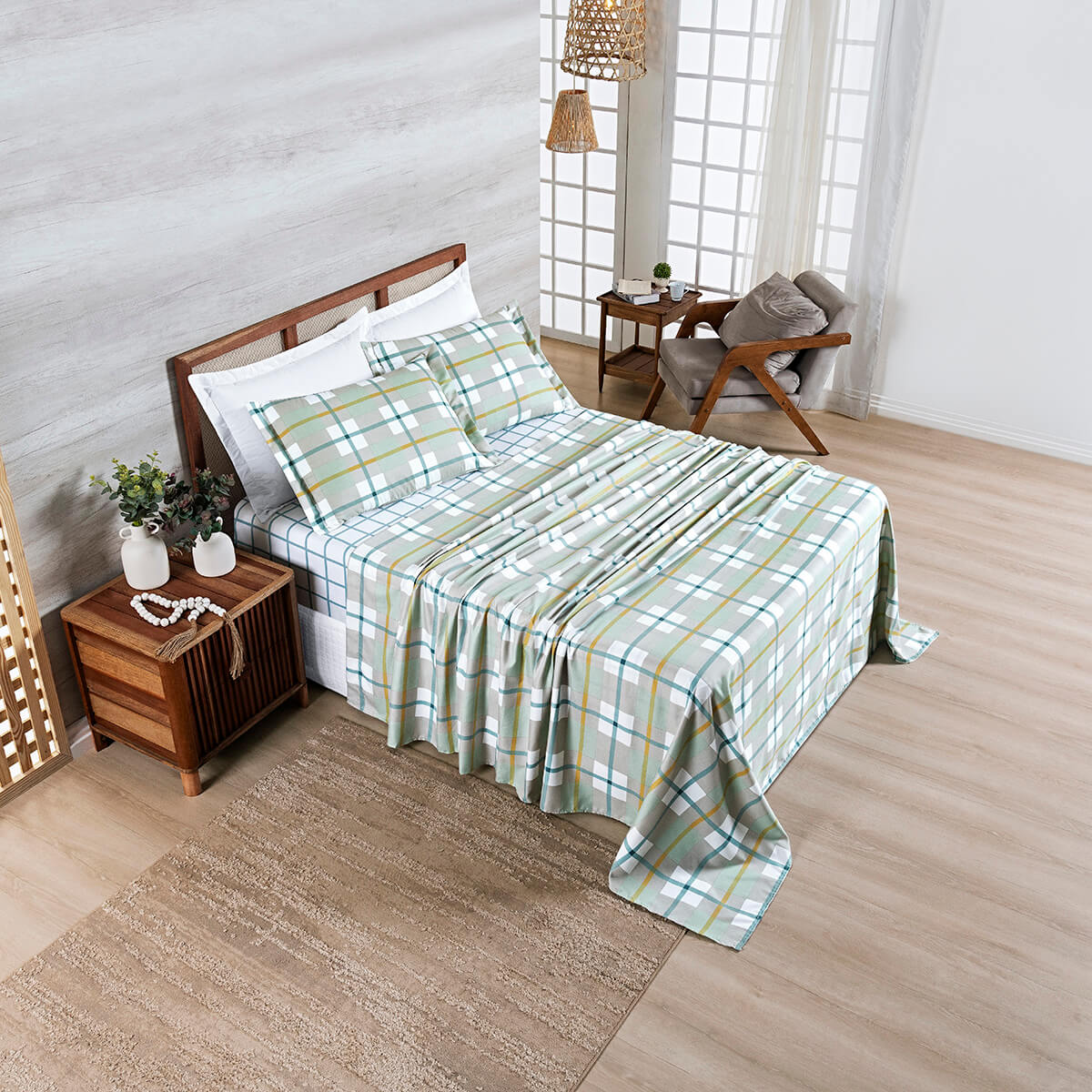 Jogo de Lençol King Aurora Completo 4 Peças Cores que Duram - Verde400 FiosVista sua cama king com personalidade. Jogo de Lençol Aurora 4 peças com cores vibrantes que não desbotam, toque macio e o charme do ponto palito. Peça já! 01 Lençol de cima 2,80m x 2,40m01 Lençol de baixo com elástico 2,03m x 1,93m x...KING a partir de