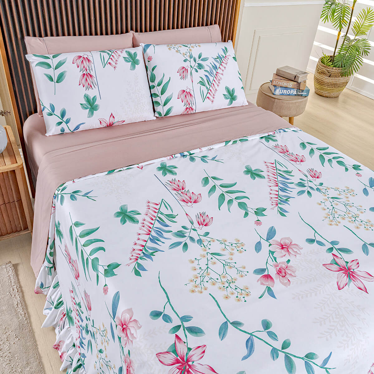 Jogo de Lençol Queen Afeto 4 Peças 400 Fios: Conforto com Estilo - Flora400 FiosO Afeto combina estética e praticidade para transformar seu quarto: toque envolvente, caimento elegante e visual que eleva a decoração da cama, todos os dias. 1 Lençol de cima 2,40m x 2,40m1 Lençol de baixo 1,98m x 1,58m x 30cm2 Fronhas 78cm x 50cm...QUEEN a partir de