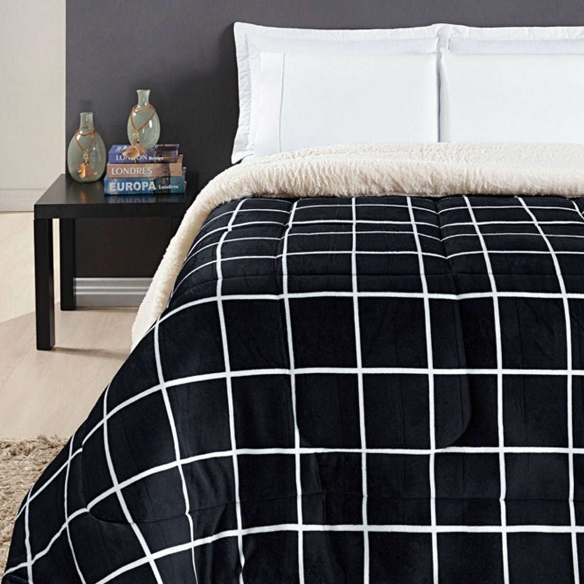 Jogo de Lençol Queen Austin 3 Peças Estilo Moderno e Prático - PretoRenove sua cama queen com o design moderno do Jogo de Lençol Austin. Estampa quadriculada, toque suave e a praticidade do conjunto de 3 peças. Compre online! 1 Lençol com elástico 1,98m x 1,58cm x 30cm2 Fronha 70cm x 50cm Composição:Tecido: Percal 200 Fios...QUEEN a partir de