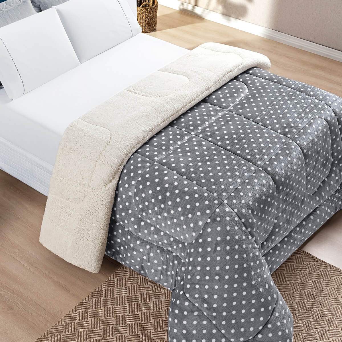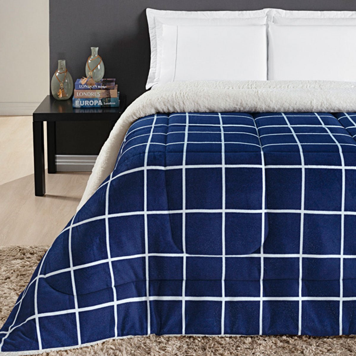 Coberdrom Queen Petit Poá: Aconchego Máximo para Noites Frias - MarinhoInvernoA solução definitiva para o frio com o charme que sua cama queen merece. Coberdrom Petit Poá com o calor da lã de carneiro (sherpa) e a maciez do flannel. 01 Coberdrom 2,40m x 2,20m Composição:Manta Microfibra: 100% PoliésterSherpa: 100% PoliésterEnchimento: 100% PoliésterQUEEN a partir de