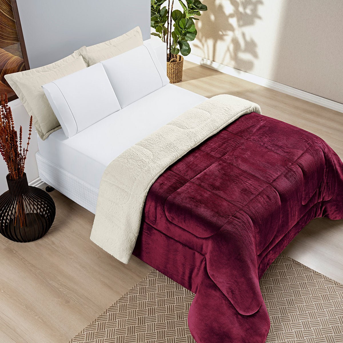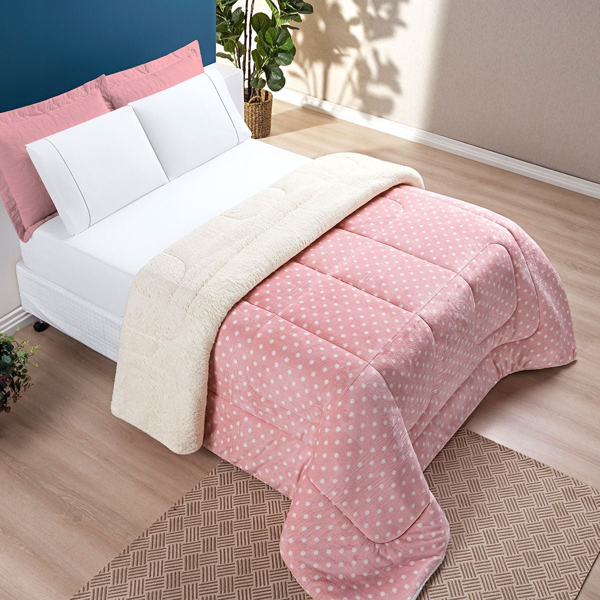 Coberdrom King Everest O Ápice do Conforto para o Inverno Rigoroso - RosêInvernoToque MacioExperimente o ápice do conforto. Coberdrom King Everest com toque flannel e o calor superior da lã de carneiro (sherpa). Mais quente, mais macio, mais luxo.1 Coberdrom 2,60m x 2,40m Composição:Sherpa: 100% PoliésterEnchimento: 100% PoliésterManta Microfibra: 100% PoliésterKING a partir de