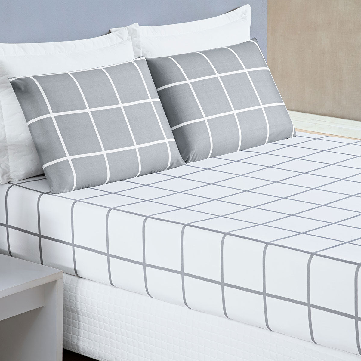 Jogo de Lençol Solteiro Austin 2 Peças Estilo Moderno e Prático - CinzaUm toque de design para a cama de solteiro. Jogo de Lençol Austin 2 peças com estampa quadriculada moderna e o conforto do tecido 200 fios. Ideal para o dia a dia. 1 Lençol c/ elástico de 1,88m x 88cm x 30cm de alt.1...SOLTEIRO a partir de