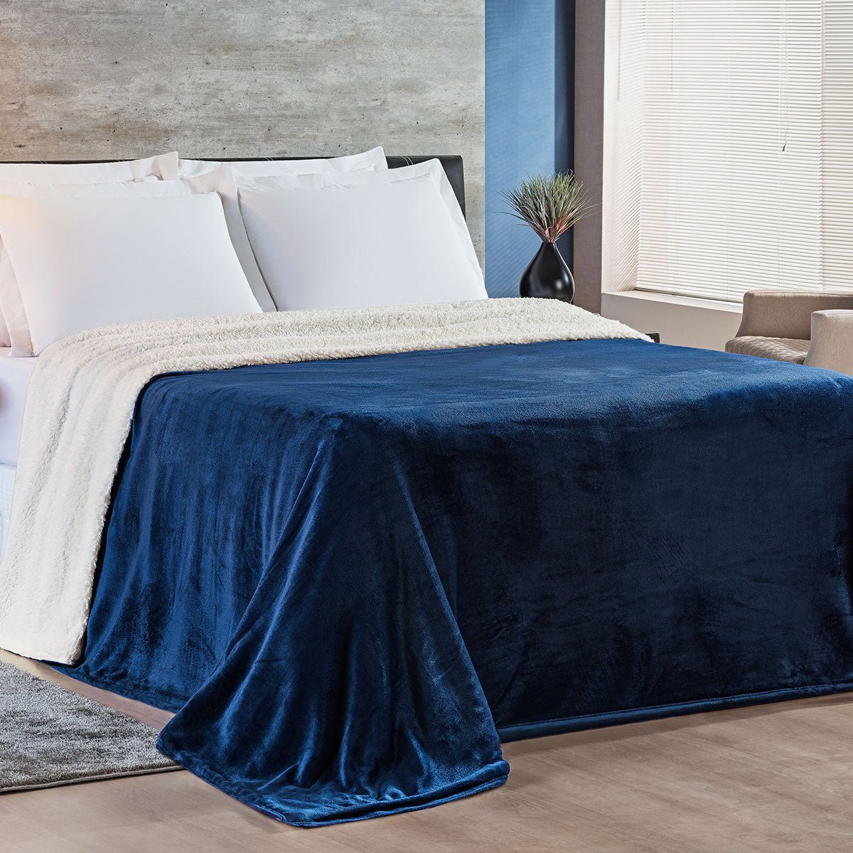 Cobertor King Alaska Dupla Face Aconchego e Cor para o Inverno - MarinhoAconchego máximo para sua cama king! Cobertor Alaska dupla face com manta flannel e o calor da lã de carneiro (sherpa). Leve, super quente e em cores vibrantes. 1 Cobertor 2,60m x 2,40m Composição:Tecido Sherpa: 100% PoliésterManta Flannel: 100% PoliésterKING a partir de