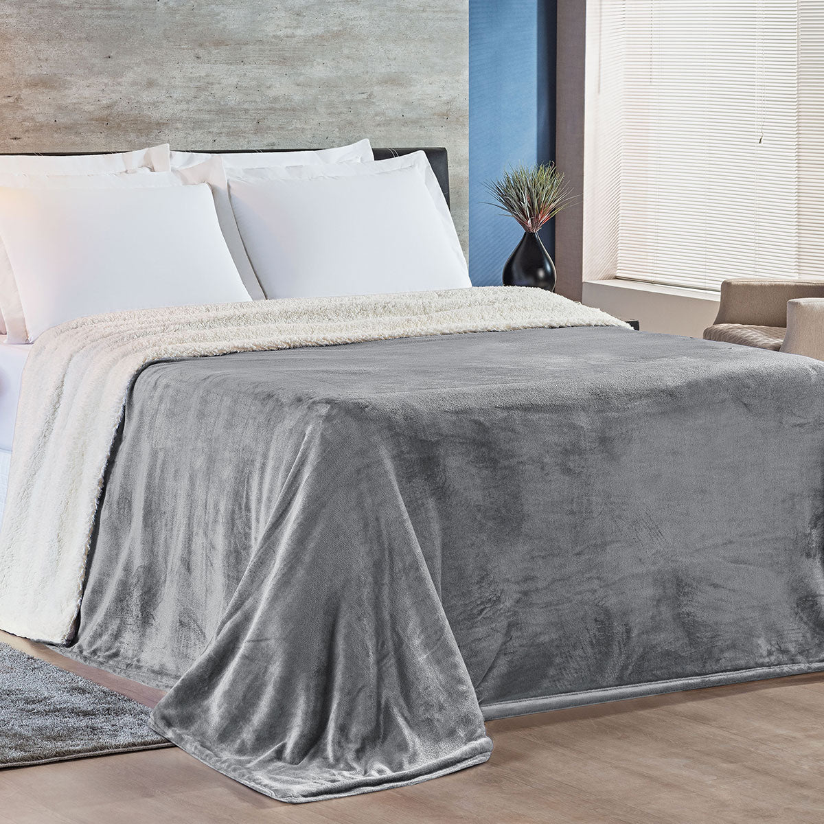 Cobertor King Alaska Dupla Face Seu Refúgio de Inverno - CinzaTransforme sua cama king em um refúgio de inverno. Cobertor Alaska dupla face com manta flannel e o calor da lã de carneiro (sherpa). Leve, quente e elegante. 1 Cobertor 2,60m x 2,40m Composição:Tecido Sherpa: 100% PoliésterManta Flannel: 100% PoliésterKING a partir de