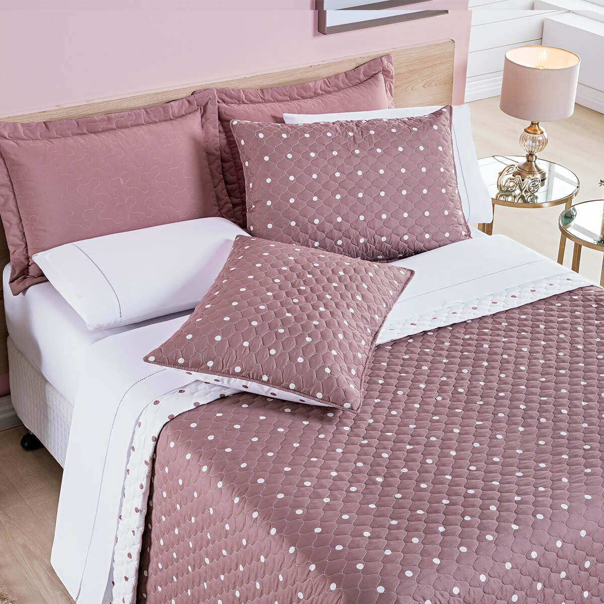 Cobre Leito King Petit Poá Versatilidade e Charme em Dupla Face - RosêDupla FaceO charme atemporal do poá para sua cama king. Cobre Leito dupla face com a elegância do matelassê e o toque macio do tecido 200 fios. Dois visuais, um só produto. 01 Cobre leito 2,80m x 2,40m02 Porta travesseiros: 70cm x 50cm Composição:Tecido: Percal...KING a partir de