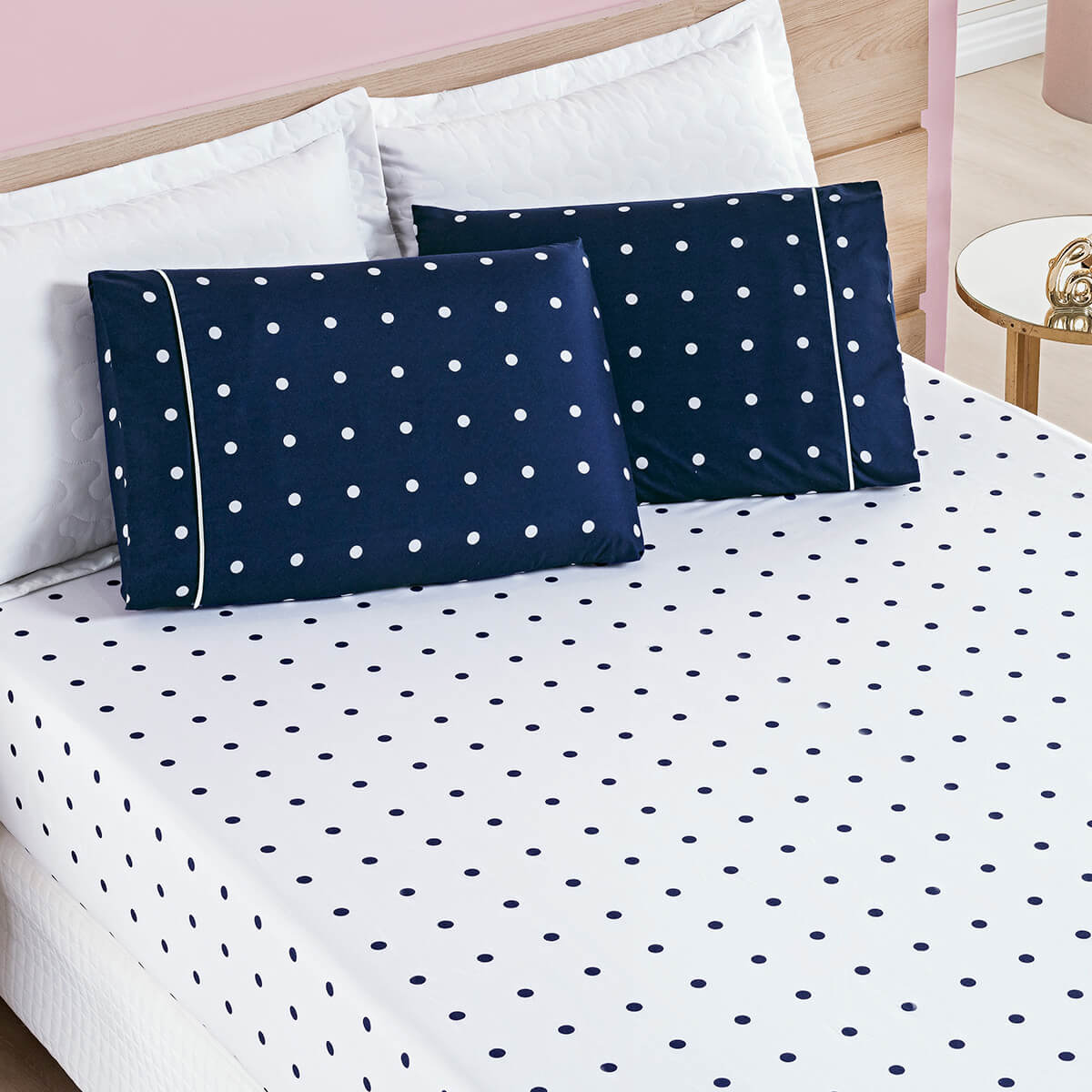 Jogo de Lençol Casal Petit Poá: Charme e Praticidade para o Dia a Dia - MarinhoToque MacioA solução prática e charmosa para sua cama de casal. Jogo de Lençol Petit Poá 3 peças com um refinado acabamento nas fronhas e a maciez do tecido 200 fios. 01 Lençol de baixo com elástico 1,88m x 1,38m x 30cm alt.02 Fronhas 70cm...CASAL a partir de