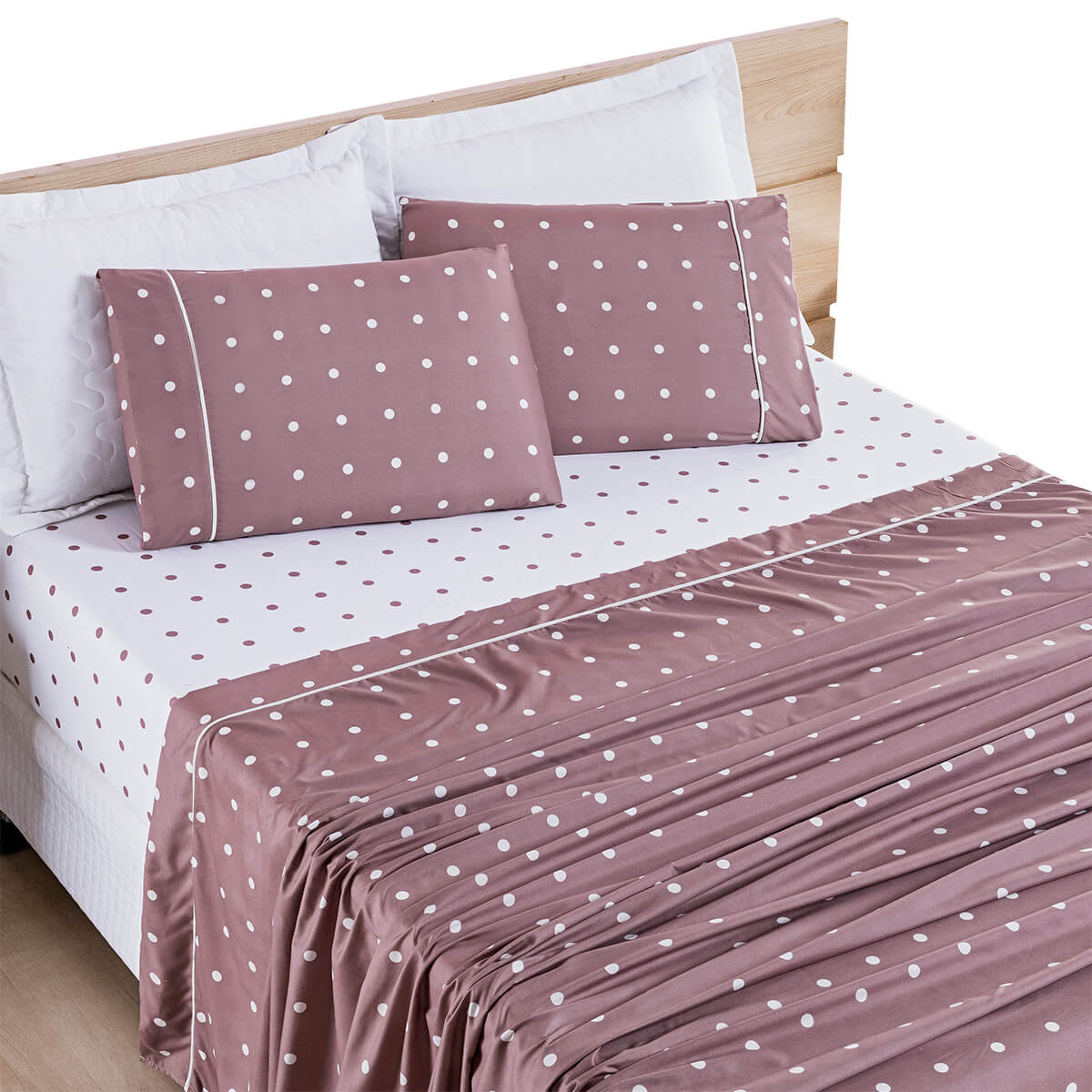 Jogo de Lençol Queen Petit Poá: Charme e Praticidade para o Dia a Dia - RosêToque MacioVista sua cama queen com o charme do poá todos os dias. Jogo de Lençol 3 peças com um delicado acabamento nas fronhas e o toque macio do tecido 200 fios. 01 Lençol de baixo com elástico 1,98m x 1,58m x 30cm alt.02 Fronhas...QUEEN a partir de