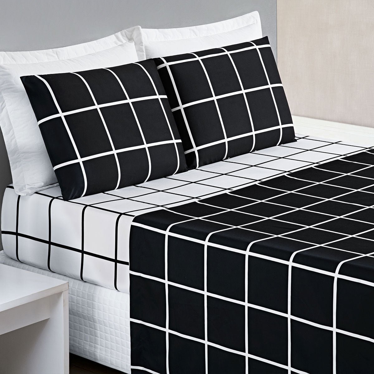 Jogo de Lençol Solteiro Austin 3 Peças Look Completo e Sofisticado - PretoTenha a cama de solteiro completa e cheia de estilo. Jogo de Lençol Austin 3 peças com a moderna estampa quadriculada e o conforto do tecido 200 fios. 1 Lençol de cima 2,40m x 1,50m1 Lençol com elástico 1,88m x 88cm x 30cm1 Fronha...SOLTEIRO a partir de