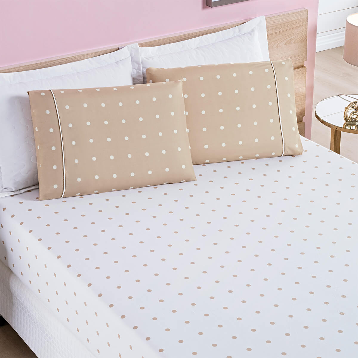 Jogo de Lençol Queen Petit Poá: Charme e Praticidade para o Dia a Dia - AvelãToque MacioVista sua cama queen com o charme do poá todos os dias. Jogo de Lençol 3 peças com um delicado acabamento nas fronhas e o toque macio do tecido 200 fios. 01 Lençol de baixo com elástico 1,98m x 1,58m x 30cm alt.02 Fronhas...QUEEN a partir de