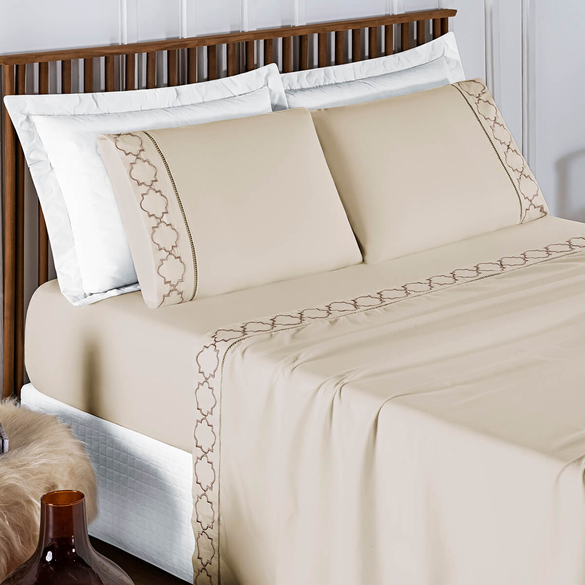 Jogo de Cama Queen Infinity 400 Fios Sofisticação em Cada Detalhe Bordado - Caqui400 FiosToque MacioA experiência de luxo para sua cama queen. Jogo de Cama Infinity 4 peças com o requinte do bordado e a maciez incomparável do percal 400 fios. Um toque de classe. 01 Lençol de cima 2,40m x 2,40m01 Lençol de baixo com elástico 1,98m...QUEEN a partir de