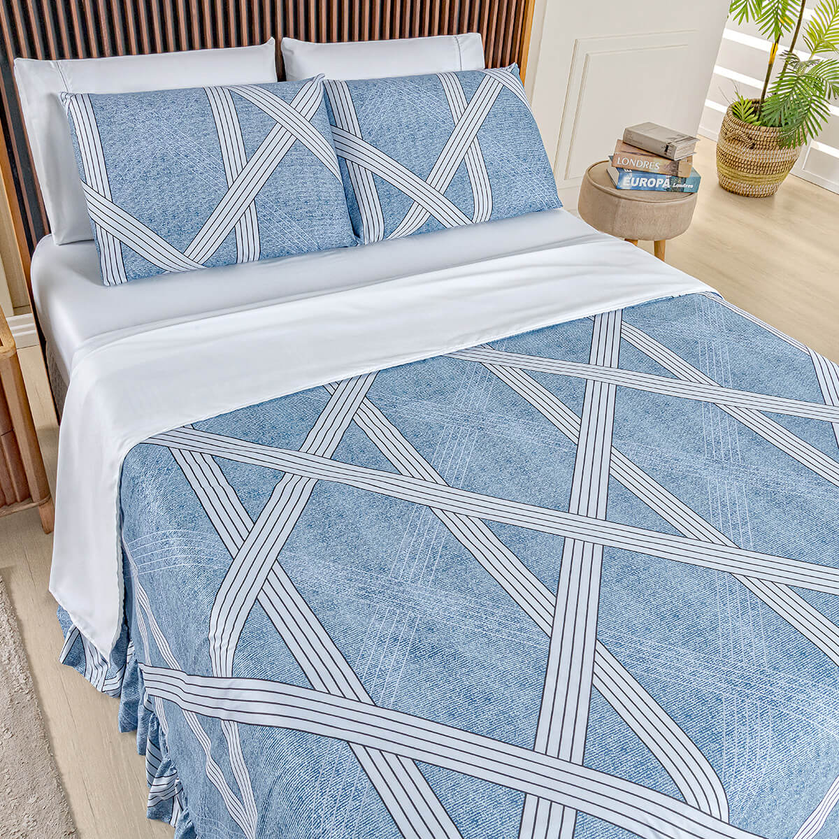 Kit Coordenado Solteiro Zoom: Quarto Jovem com Estilo e Organização - ZoomKit Coordenado400 FiosPara quem busca agilidade diária, o Zoom resolve em três passos: abrir, esticar e admirar. A colcha com babado faz o acabamento imediato; o porta-travesseiro estampado alinha o look; e o lençol de baixo com elástico 30 cm mantém tudo no lugar, reduzindo ajustes....SOLTEIRO a partir de