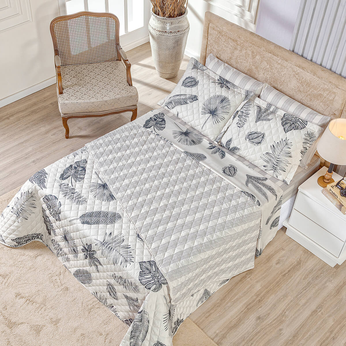 Colcha Casal Bouti Slim Dupla Face Matelada com Acabamento em Ondas - NoraLançamentoDupla FaceMais VendidosVersatilidade e charme para sua cama de casal! Colcha Bouti Slim dupla face com duas estampas. Delicado acabamento em ondas e conforto do matelassê. Peça já 1 Colcha 2,30m x 2,10m2 Porta travesseiros 70cm x 50cm com Aba Americana Composição:Tecido: Microfibra 150 fios |...CASAL a partir de