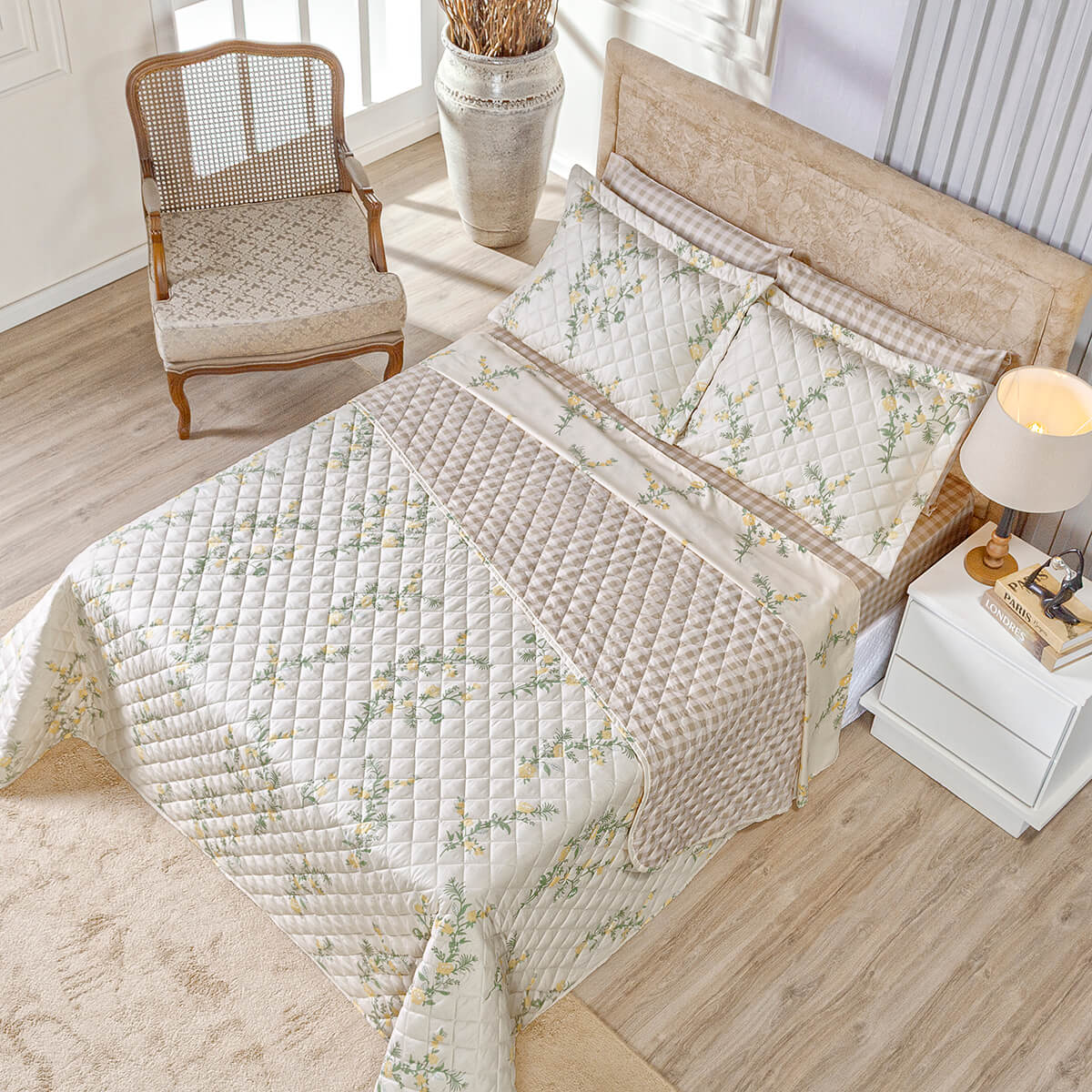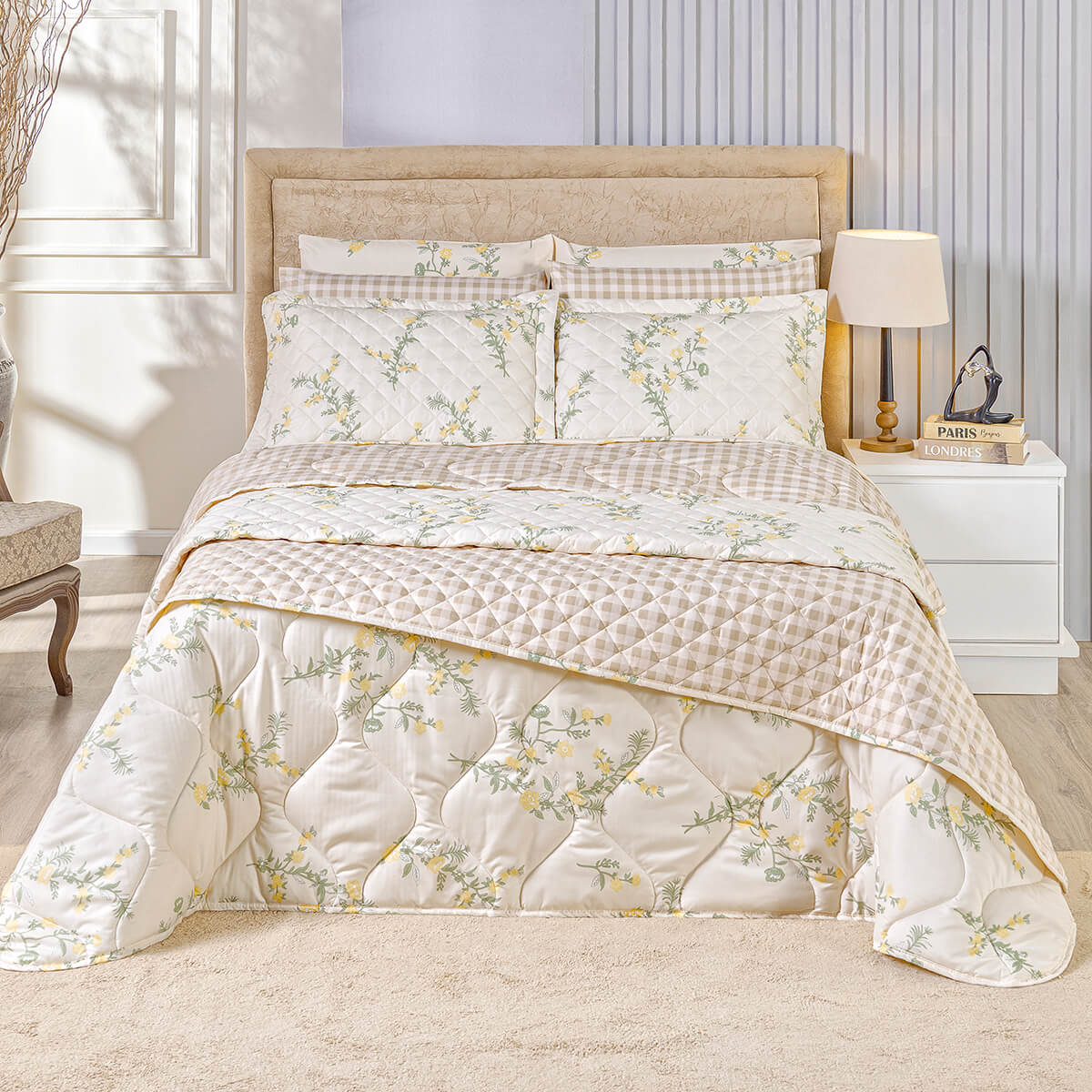 Cobre Leito Casal Afeto: Carinho Diário Sem Esforço - FloraLançamento400 FiosCarinho diário sem esforço: matelado leve e toque macio em 3 peças, com porta travesseiros em aba para um acabamento impecável. Fácil de lavar, seca rápido e mantém a cor.1 Cobre Leito dupla face 2,40m x 2,20m2 Porta Travesseiros com aba americana 80cm x...CASAL a partir de