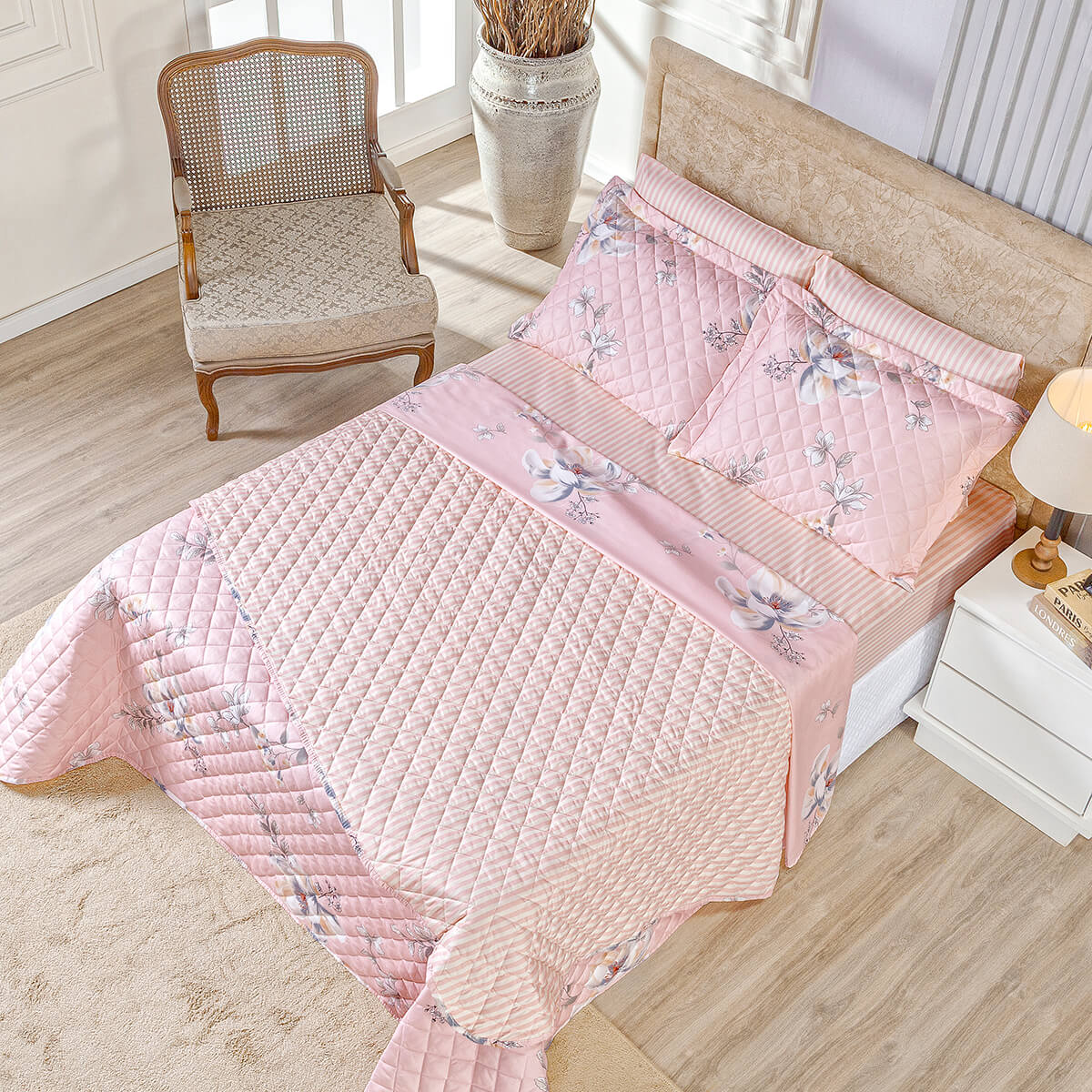 Cobre Leito Casal Aveline 3 Peças: Efeito 3D Sofisticado, Dupla Face e Aba Americana - RosêLançamentoDupla FaceUm toque de alta decoração para a sua cama. O cobre leito Aveline combina o design 3D que cria volume elegante, a praticidade da dupla face e os porta-travesseiros com aba americana. Resultado: um visual sofisticado, harmonioso e fácil de compor.1 Cobre leito dupla...CASAL a partir de