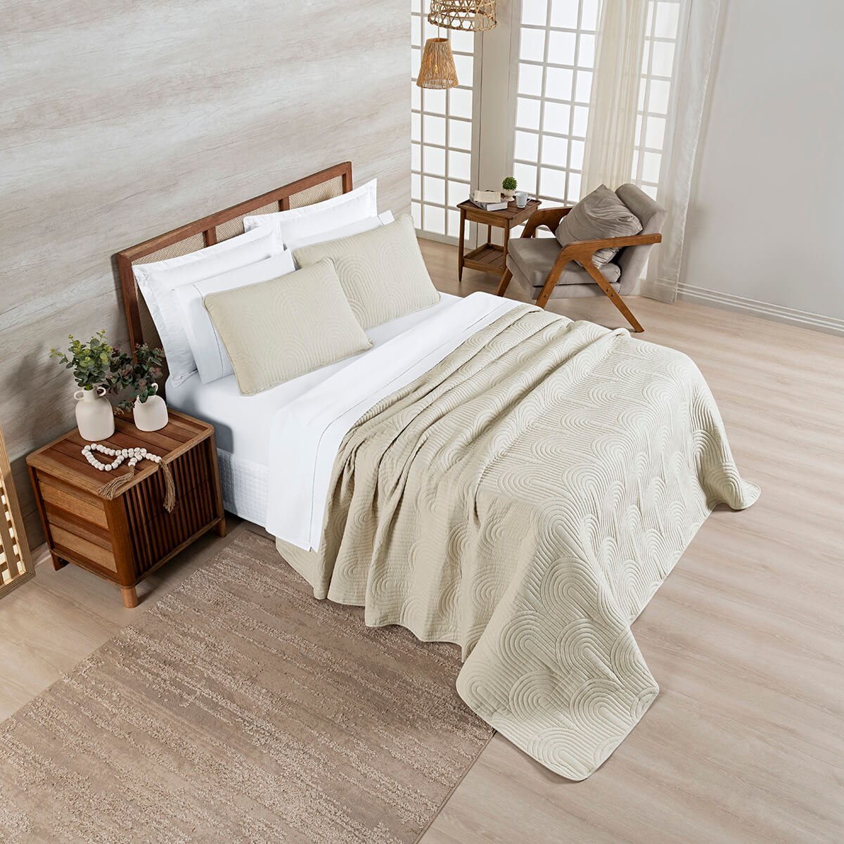 Cobre Leito Casal Arcos: Leve, Macio e Sempre Harmônico - BaunilhaLançamentoToque MacioCom desenho de matelado em arcos e paleta neutra, o cobre leito Arcos traz leveza visual e conforto imediato. O enchimento super soft realça o volume sem pesar, deixando a cama sempre harmoniosa.1 Colcha 2,40m x 2,20m2 Porta Travesseiros 70cm x 50cm Composição:Tecido: Percal...CASAL a partir de