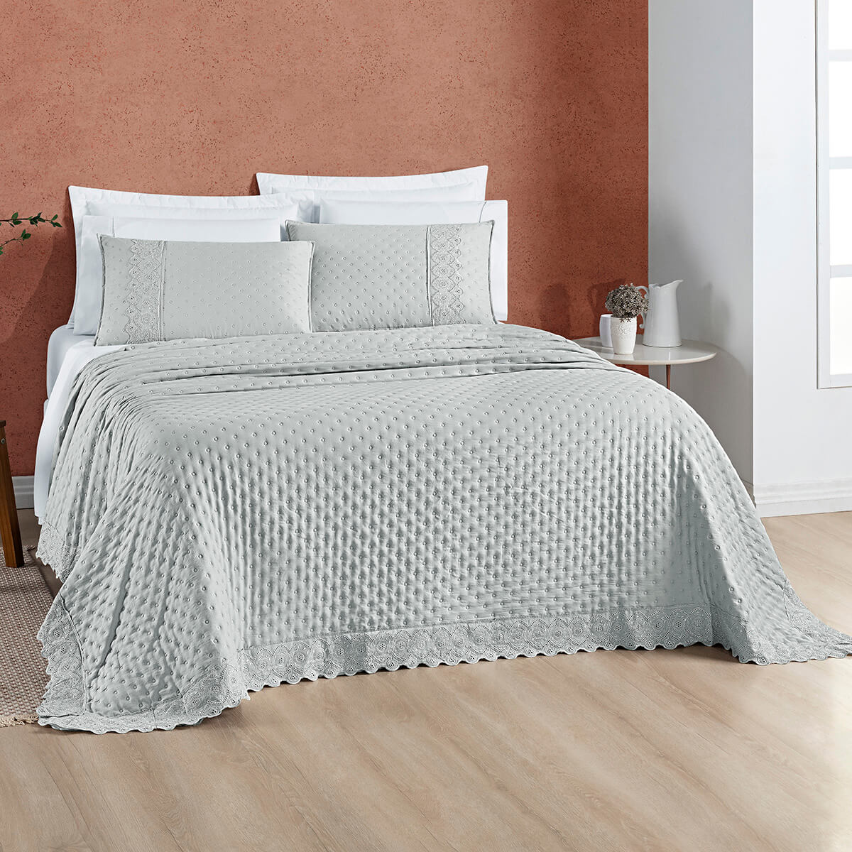 Cobre Leito Casal Poppy Aconchego e Estilo em Alto Relevo - CinzaLançamentoToque MacioApaixone-se pela textura! Cobre Leito Casal Poppy dupla face com o charme dos pompons em relevo e um lado liso para versatilidade. Toque macio e design único. 1 Cobre Leito 2,40m x 2,20m2 Porta travesseiros 80cm x 55cm Composição:Tecido: Superior e Inferior 100% Poliéster...CASAL a partir de