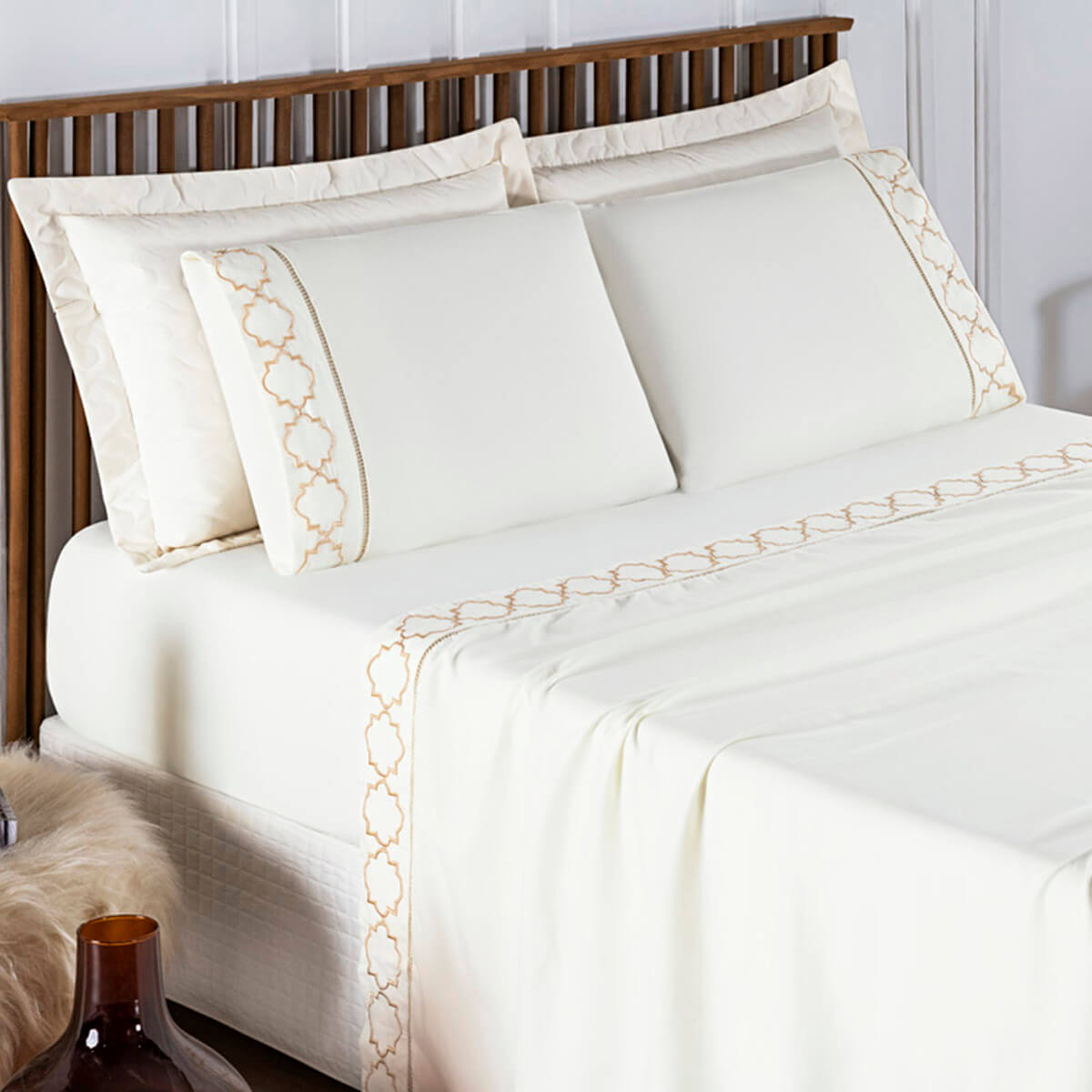 Jogo de Cama Casal Infinity 400 Fios Sofisticação em Cada Detalhe Bordado - PalhaLançamento400 FiosToque MacioVista sua cama de casal com o luxo dos detalhes. Jogo de Cama Infinity 4 peças com acabamento bordado, ponto palito e o toque sublime do percal 400 fios. 01 Lençol de cima 2,40m x 2,20m01 Lençol de baixo com elástico 1,88m x 1,38m...CASAL a partir de