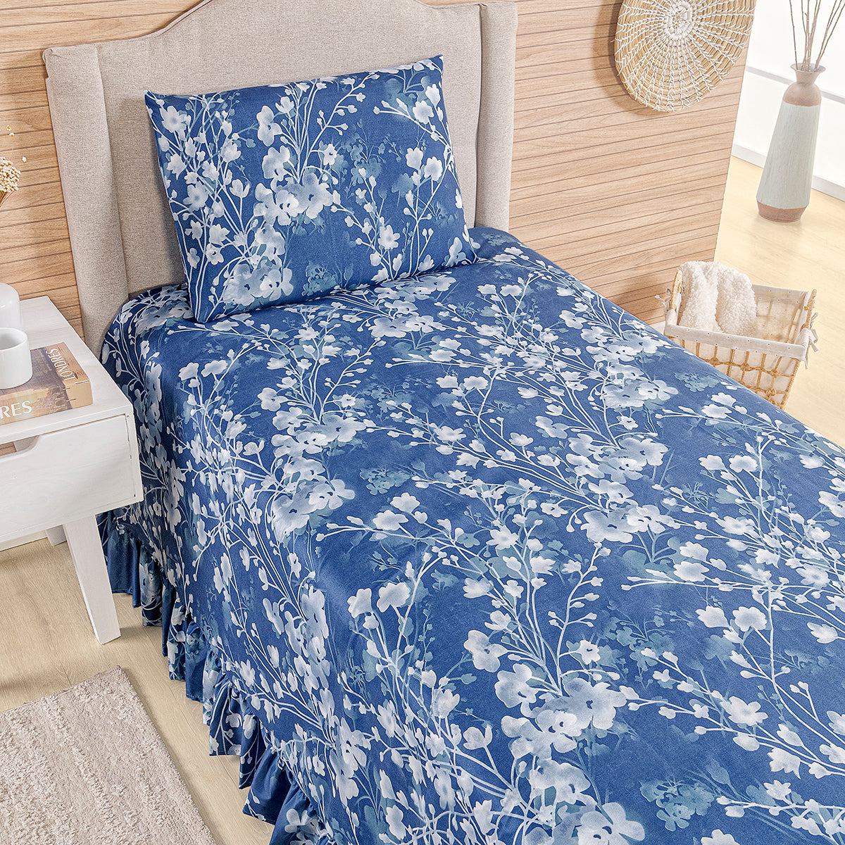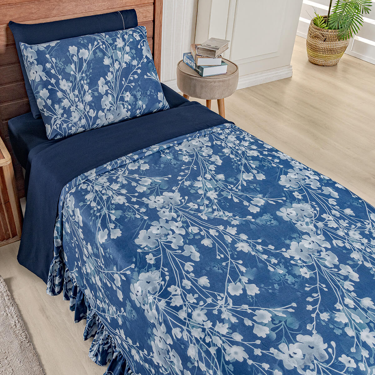 Kit Colcha Solteiro com Babado e Porta Travesseiro Nuance Prática e Seca Rápido - Marinho400 FiosColcha Solteiro Nuance 2 peças em Percal de poliéster 400 fios. Leve, toque aconchegante, seca rápido e ótimo custo-benefício. Garanta a sua com a Vianelli. 1 Colcha 2,40m x 1,70m1 Porta travesseiro 70cm x 50cm Composição:Percal 400 Fios | 100% poliésterSOLTEIRO a partir de