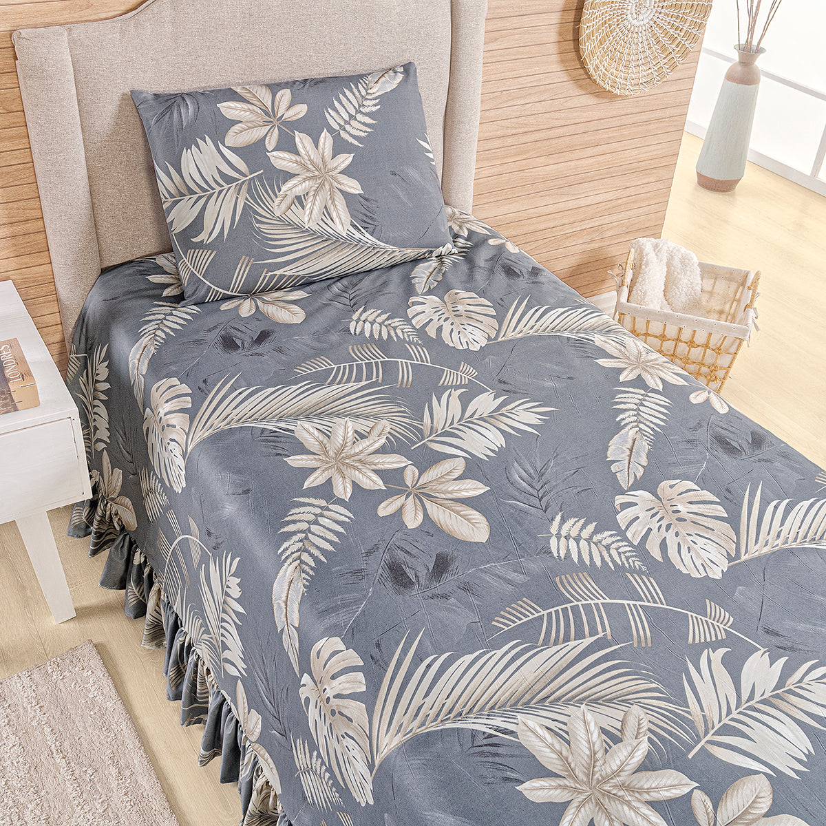 Kit Colcha Solteiro com Babado e Porta Travesseiro Nuance Prática e Seca Rápido - Tati400 FiosColcha Solteiro Nuance 2 peças em Percal de poliéster 400 fios. Leve, toque aconchegante, seca rápido e ótimo custo-benefício. Garanta a sua com a Vianelli. 1 Colcha 2,40m x 1,70m1 Porta travesseiro 70cm x 50cm Composição:Percal 400 Fios | 100% poliésterSOLTEIRO a partir de
