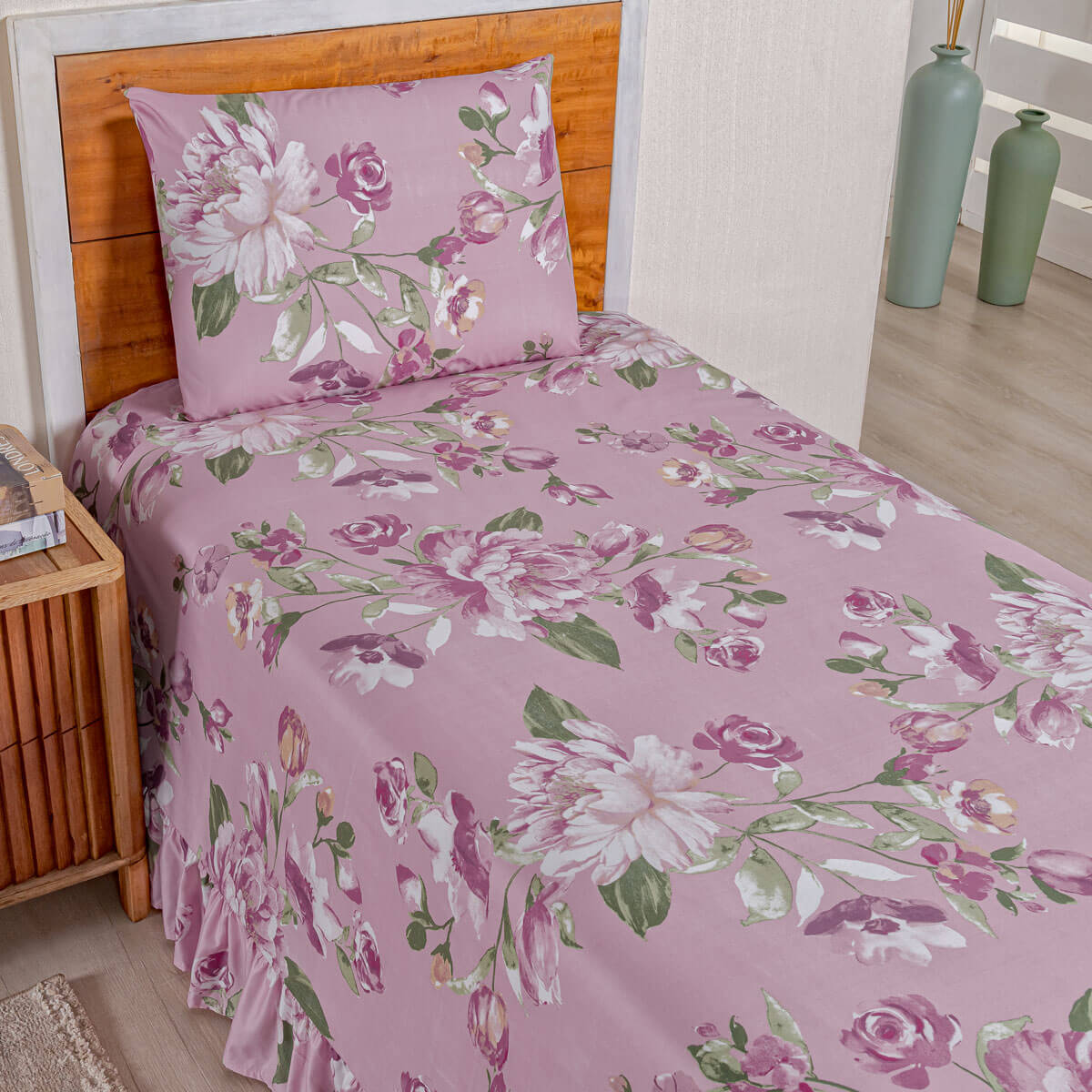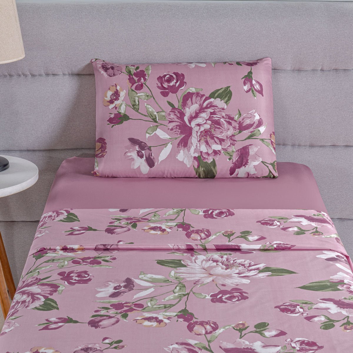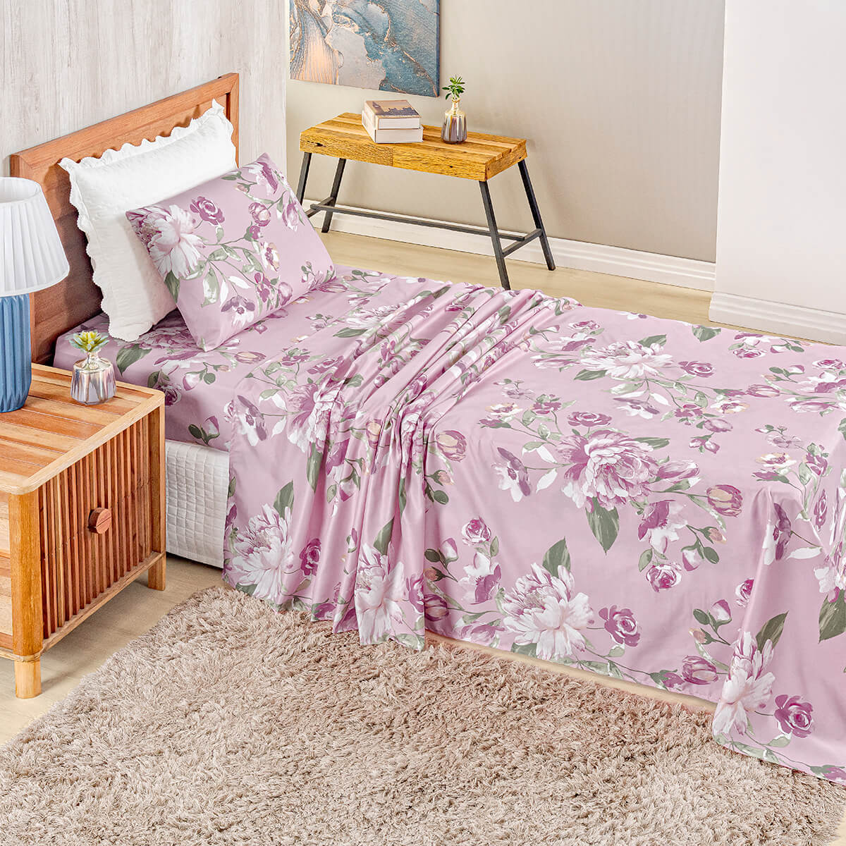 Jogo de Lençol SOLTEIRO Completo Avere 3 Pçs - LilacToque MacioA experiência floral completa para sua cama solteiro. Jogo de Lençol Avere 3 peças com estampa delicada no lençol de cima e fronhas. Sofisticação e toque suave. 01 Lençol de Cima: 2,40m x 1,50m01 Lençol de Baixo com elástico: 1,88m x 88cm x 30cm01...SOLTEIRO a partir de