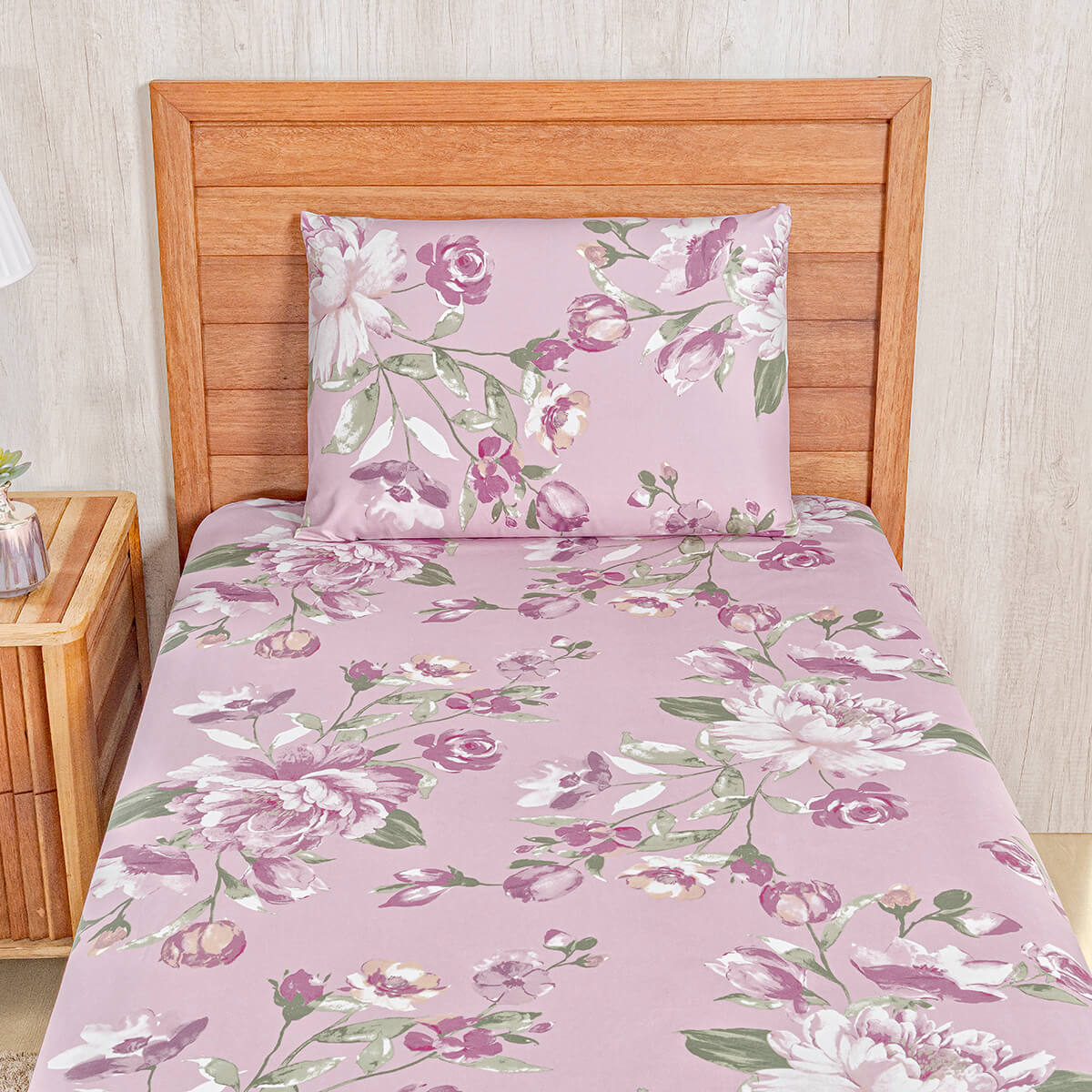 Jogo de Lençol Solteiro Avere 2 Peças com Estampa Floral - LilacToque MacioLeve a delicadeza das flores para a cama de solteiro. Jogo de Lençol Avere com fronhas estampadas, lençol liso e tecido 200 fios. Perfeito para o dia a dia. 01 Lençol de baixo c/ elástico p/ colchão 1,88m x 88cm x 30cm alt01 Fronha:...SOLTEIRO a partir de