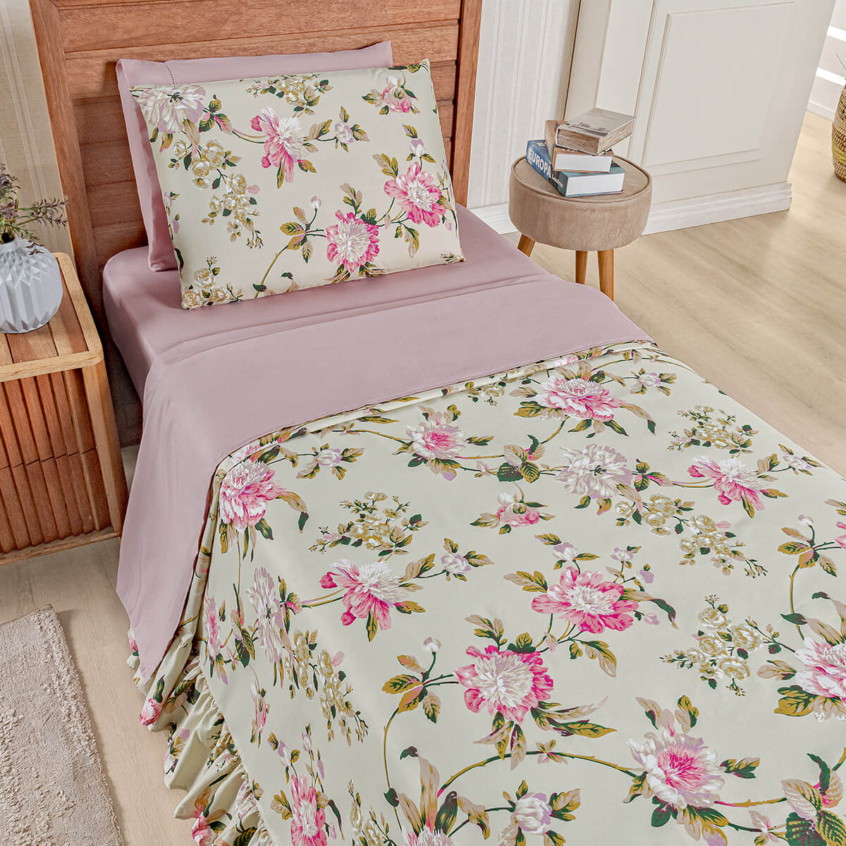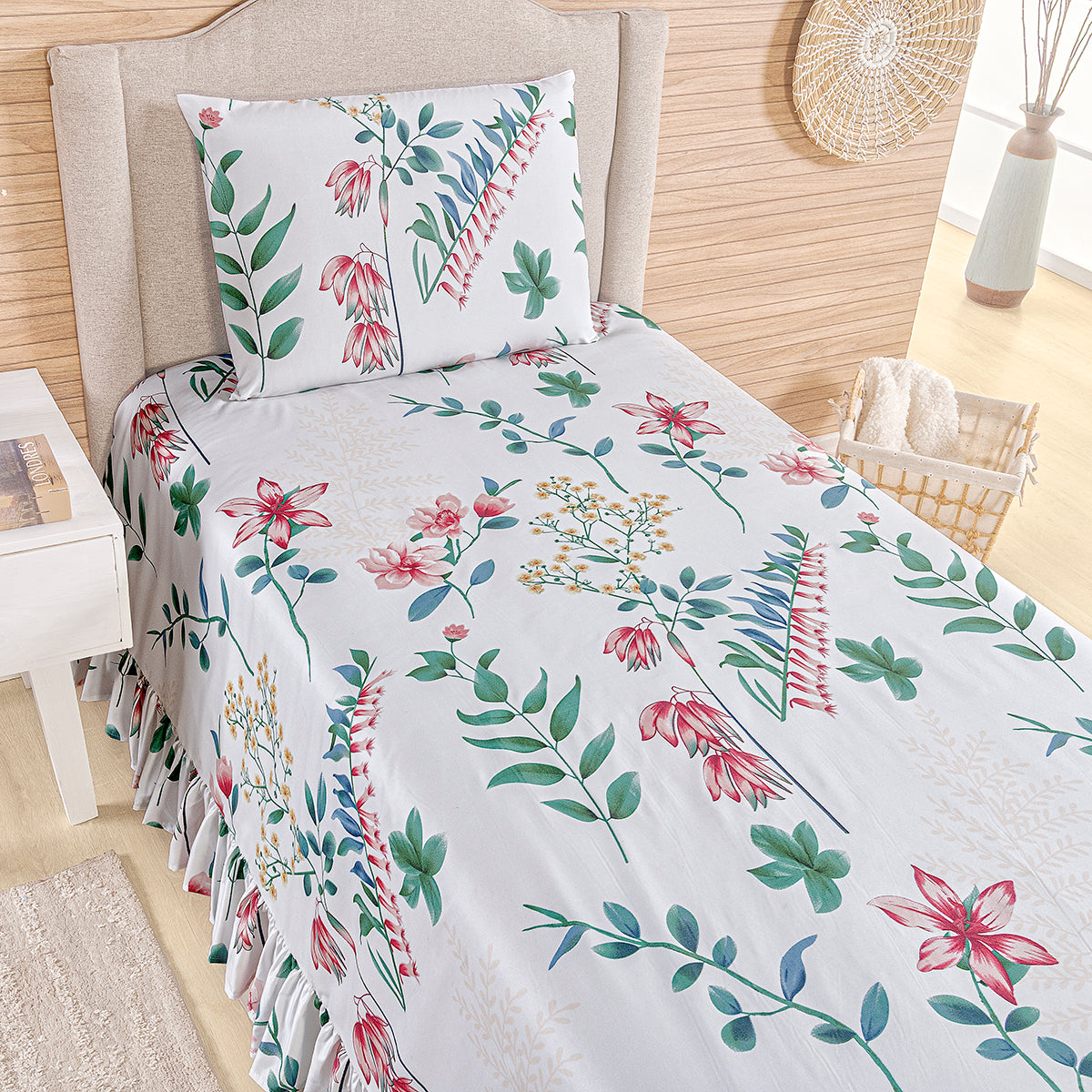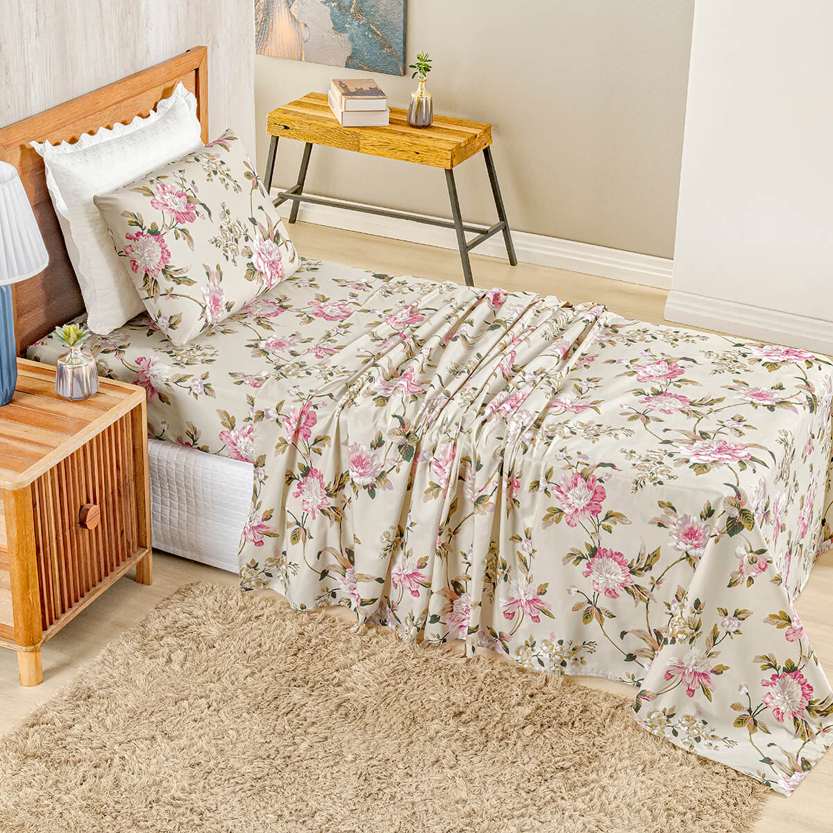 Jogo de Lençol Solteiro Avere 2 Peças com Estampa Floral - DallasToque MacioLeve a delicadeza das flores para a cama de solteiro. Jogo de Lençol Avere com fronhas estampadas, lençol liso e tecido 200 fios. Perfeito para o dia a dia. 01 Lençol de baixo c/ elástico p/ colchão 1,88m x 88cm x 30cm alt01 Fronha:...SOLTEIRO a partir de