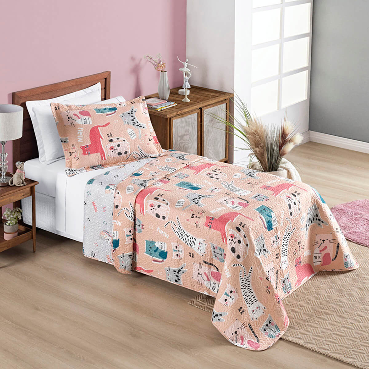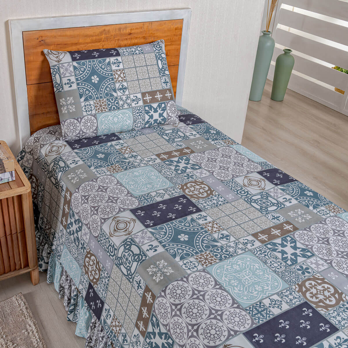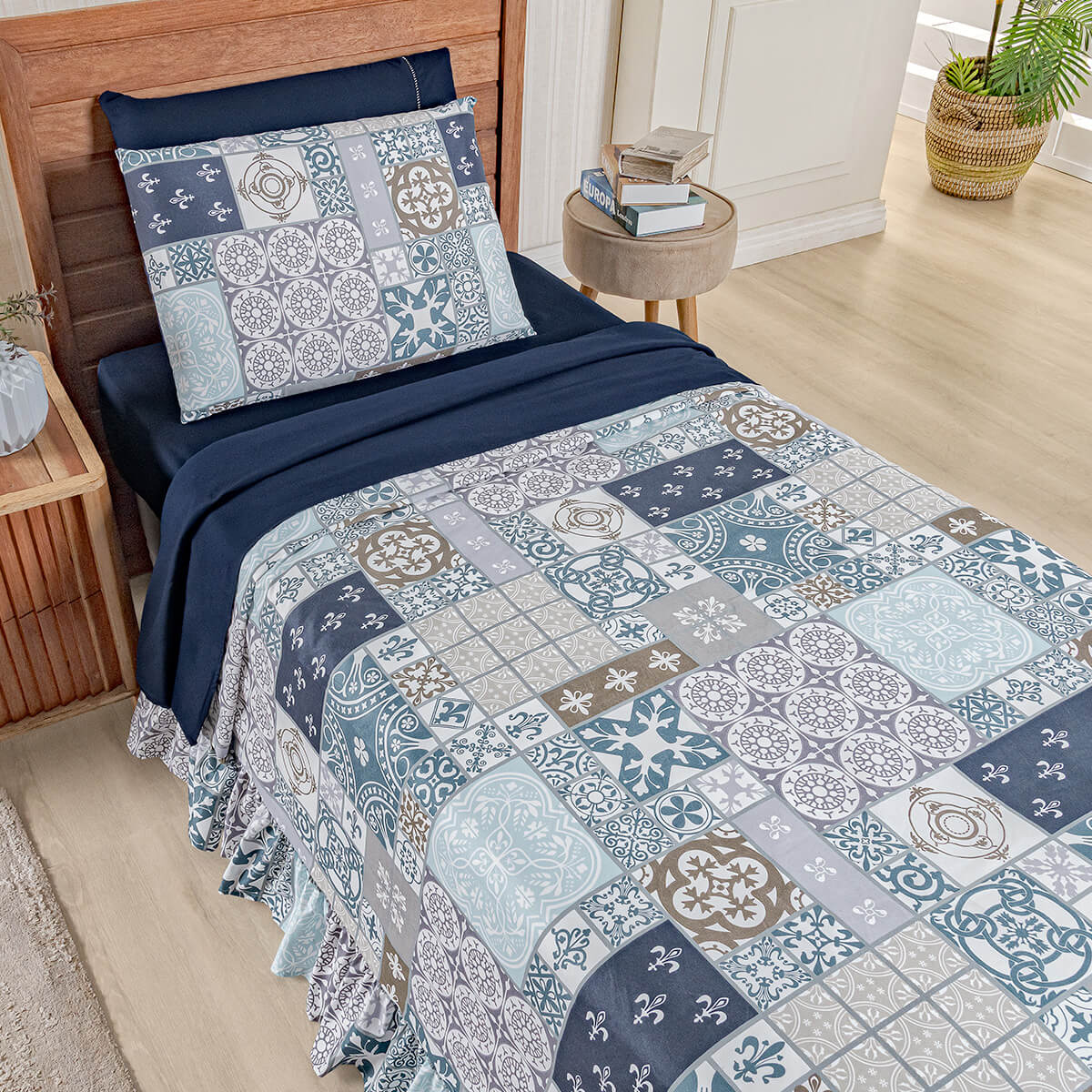 Kit Coordenado Solteiro Zoom: Quarto Jovem com Estilo e Organização - ZoomKit Coordenado400 FiosPara quem busca agilidade diária, o Zoom resolve em três passos: abrir, esticar e admirar. A colcha com babado faz o acabamento imediato; o porta-travesseiro estampado alinha o look; e o lençol de baixo com elástico 30 cm mantém tudo no lugar, reduzindo ajustes....SOLTEIRO a partir de
