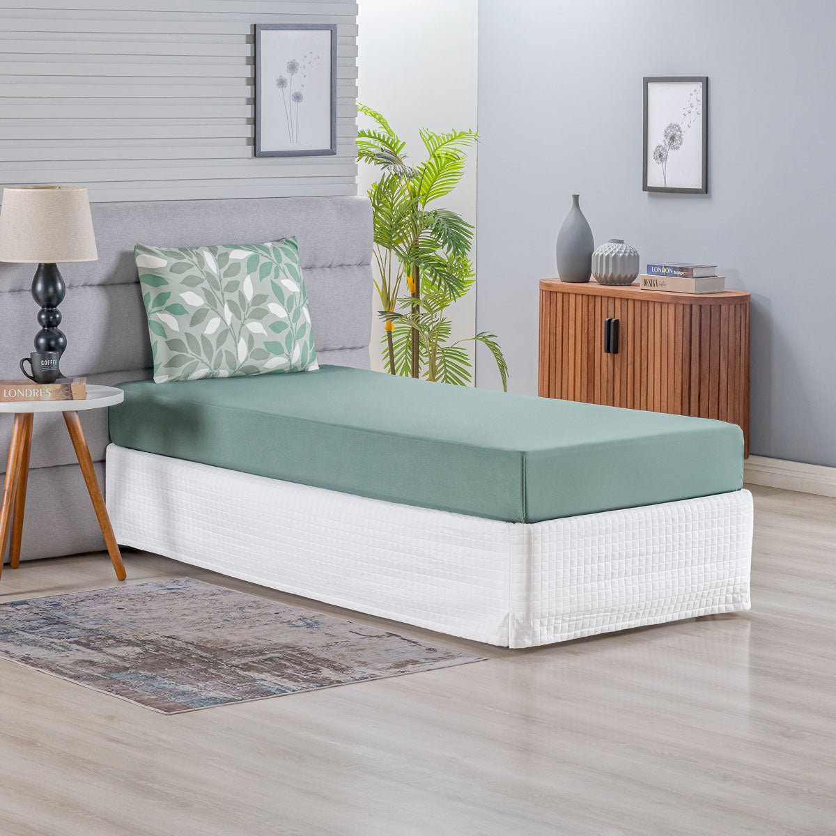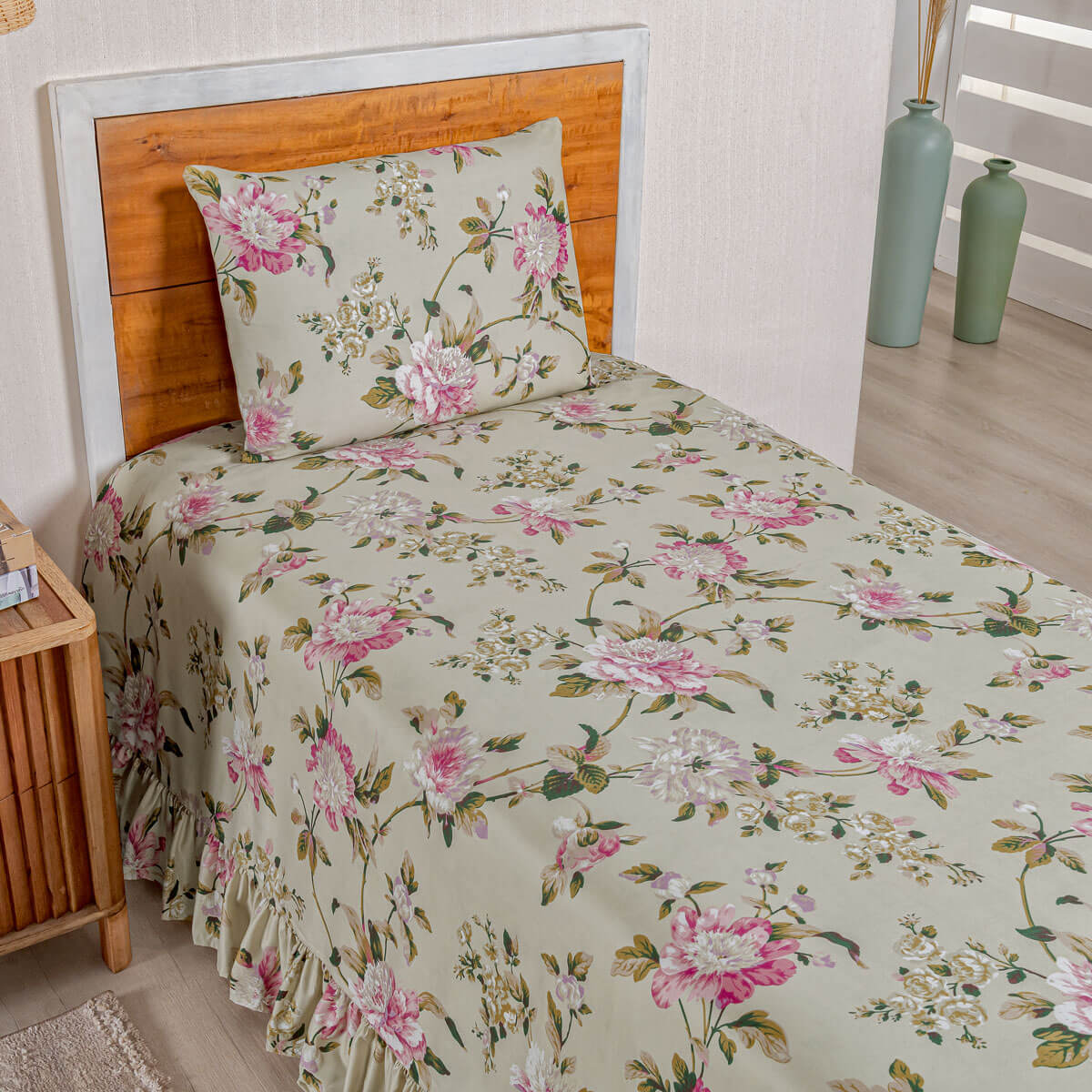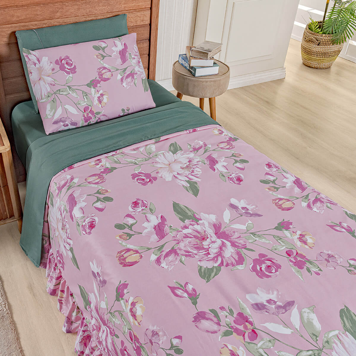 Kit Colcha Solteiro com Babado e Porta Travesseiro Nuance Prática e Seca Rápido - Verde400 FiosColcha Solteiro Nuance 2 peças em Percal de poliéster 400 fios. Leve, toque aconchegante, seca rápido e ótimo custo-benefício. Garanta a sua com a Vianelli. 1 Colcha 2,40m x 1,70m1 Porta travesseiro 70cm x 50cm Composição:Percal 400 Fios | 100% poliésterSOLTEIRO a partir de