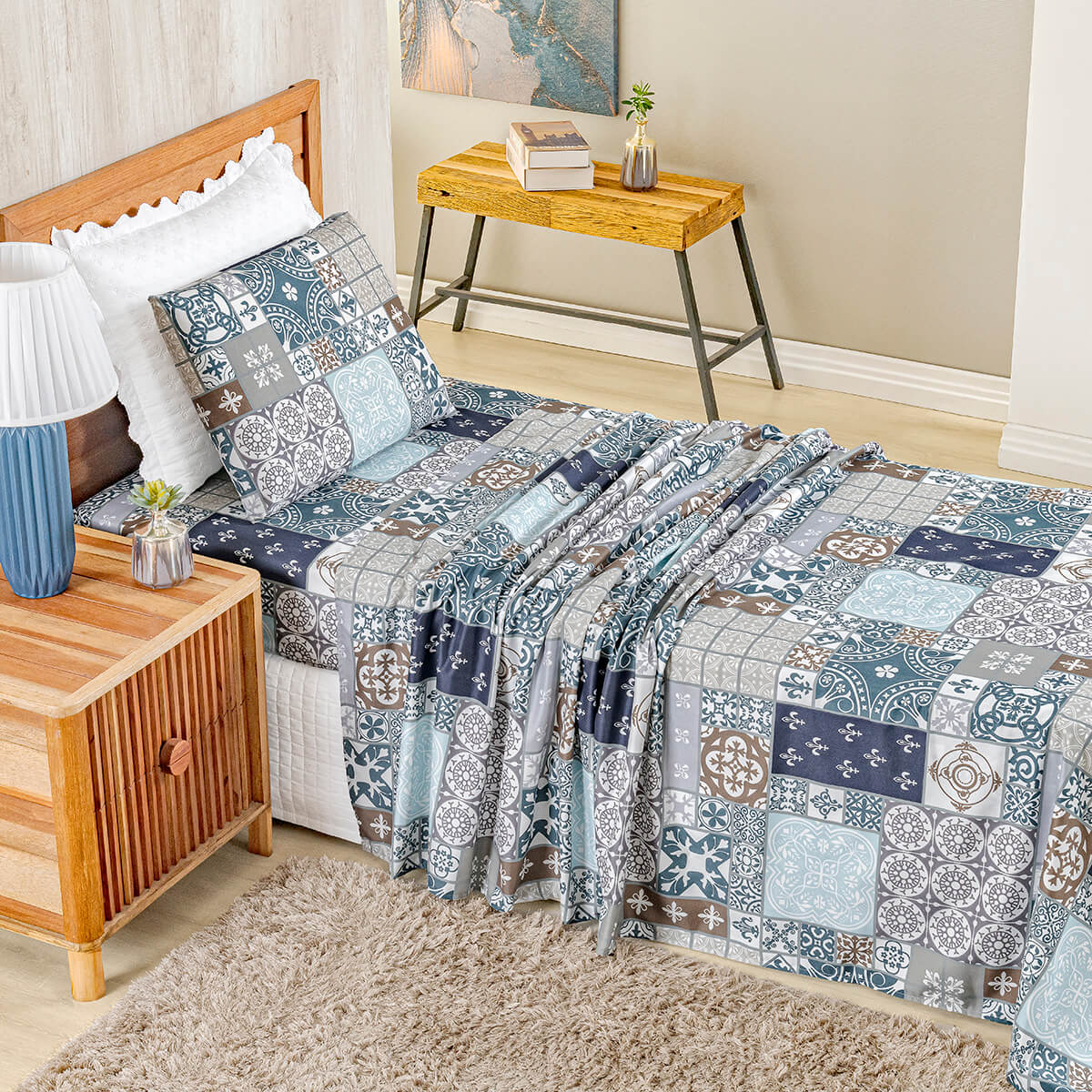 Jogo de Lençol Solteiro 2 Peças Nuance Total O Essencial e Prático - Zoom400 FiosO conjunto completo com Percal 400 Fios para a cama de solteiro! Jogo de Lençol 2pçs Nuance Total, 100% estampado, prático e macio. Conforto e estilo em todas as peças.1 Lençol de baixo com elástico em toda volta 1,90m x 0,90m x 0,30m1 Fronha...SOLTEIRO a partir de