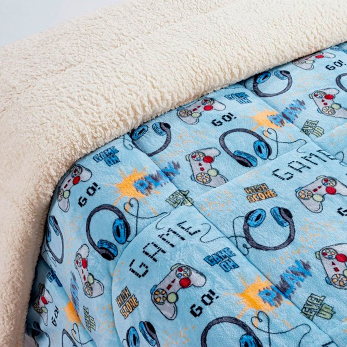 Colcha Infantil Bouti Kids Dupla Face Duas Aventuras em Uma - GameLançamentoInfantilDupla FaceDois universos de aventura em uma só colcha! Dupla face e em matelassê, é perfeita para decorar e brincar. Estampas de game, astronauta, dinos e mais. 1 Colcha 2,40m x 1,60m1 Porta travesseiro 70cm x 50cm Composição:Tecido: 100% PoliésterEnchimento: 100% PoliésterSOLTEIRO a partir de