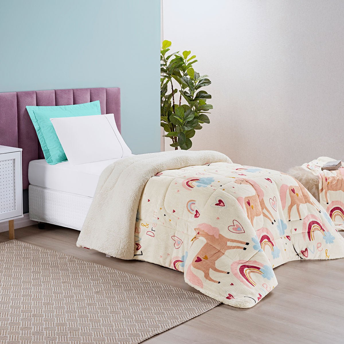 Coberdrom Infantil Bouti Kids Noites Mágicas e Quentinhas - UnicórnioLançamentoInfantilInvernoO calor da lã de carneiro (sherpa) para as noites de contos de fadas! Coberdrom Bouti Kids com estampas de princesa, unicórnio e mais. Super quente e macio. 01 Coberdrom 2,40m x 1,50m Composição:Manta Microfibra: 100% PoliésterSherpa: 100% PoliésterEnchimento: 100% PoliésterSOLTEIRO a partir de