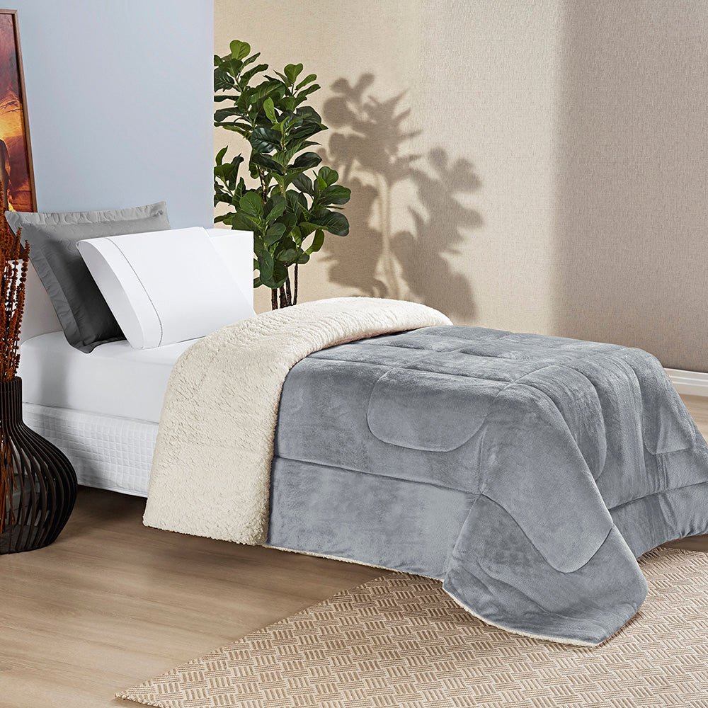 Coberdrom Solteiro Everest O Ápice do Conforto para o Inverno Rigoroso - CinzaInvernoToque MacioExperimente o ápice do conforto. Coberdrom Solteiro Everest com toque flannel e o calor superior da lã de carneiro (sherpa). Mais quente, mais macio, mais luxo. 1 Coberdrom 2,40m x 1,50m Composição:Tecido Sherpa: 100% PoliésterEnchimento: 100% PoliésterManta Microfibra: 100% PoliésterSOLTEIRO a partir de