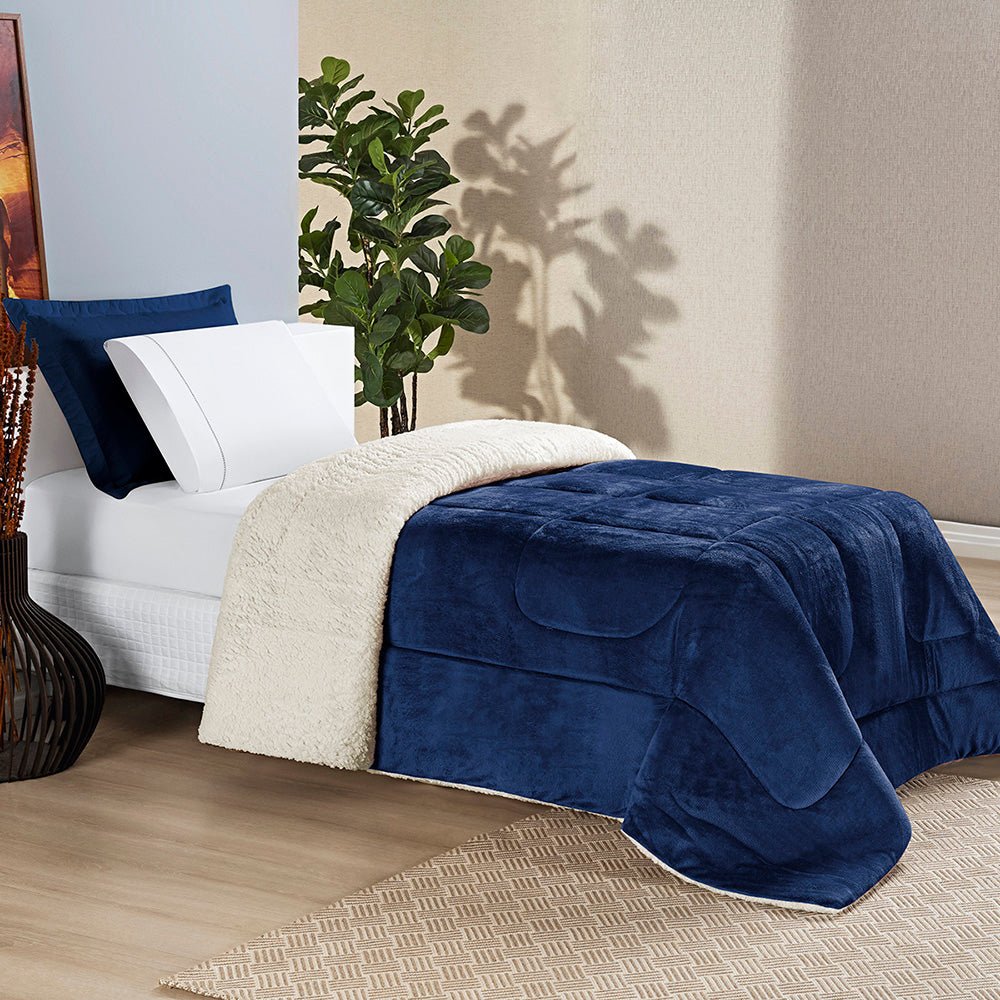 Coberdrom Solteiro Austin Calor Intenso com Design Moderno - MarinhoInvernoToque MacioA solução definitiva para o frio. Coberdrom Solteiro Austin com enchimento extra, toque flannel e o calor da lã de carneiro (sherpa). Conforto e estilo para você. 1 Coberdrom 2,40m x 1,50mComposição:Manta Fleece: 100% PoliésterSherpa: 100% PoliésterEnchimento: Manta Siliconizada 100% PoliésterSOLTEIRO a partir de