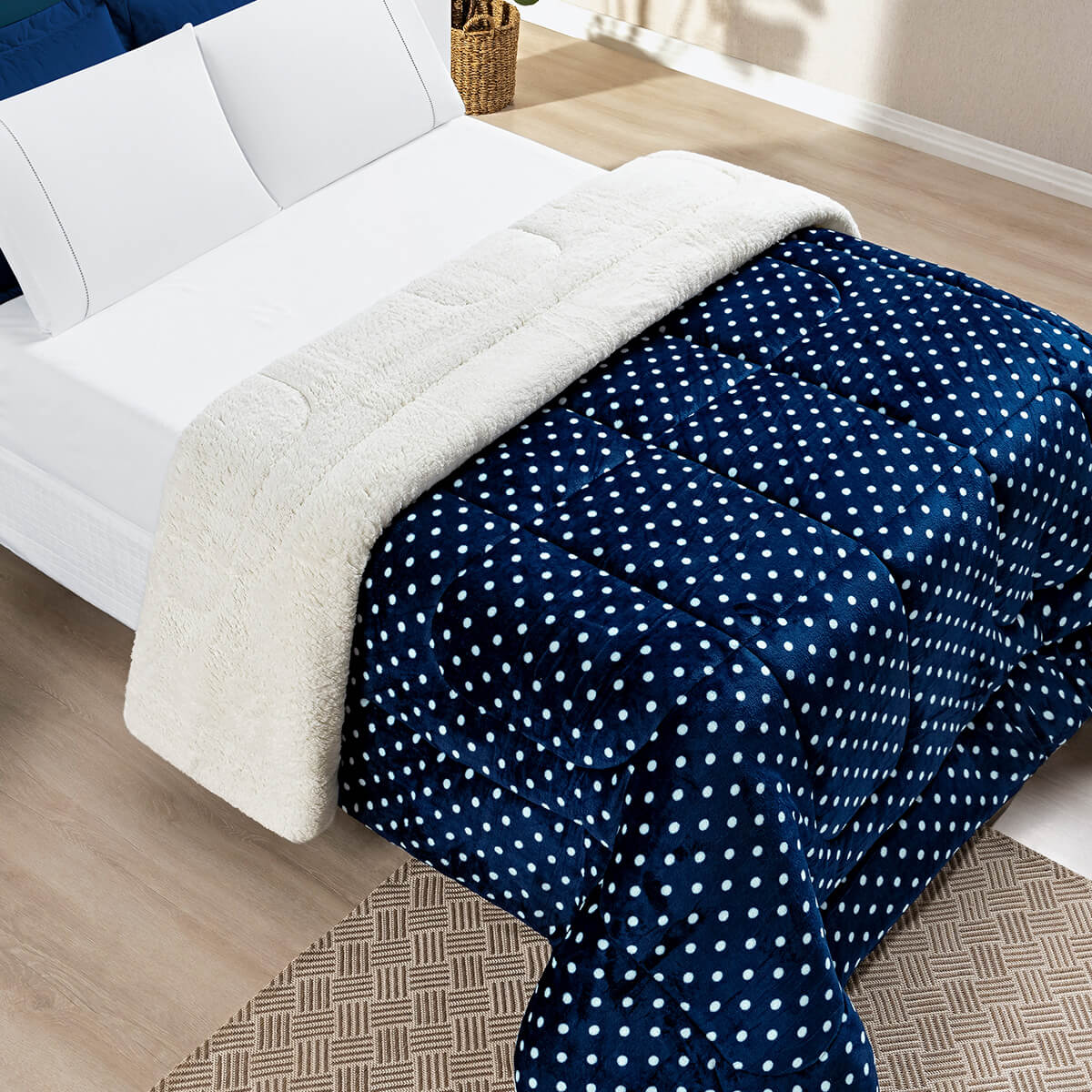 Coberdrom Solteiro Petit Poá: Aconchego Máximo para Noites Frias - MarinhoInvernoO inverno mais charmoso e quentinho! Coberdrom Solteiro Petit Poá com o toque macio do flannel e o calor aconchegante da lã de carneiro (sherpa). 01 Coberdrom 2,40m x 1,50m Composição:Manta Microfibra: 100% PoliésterSherpa: 100% PoliésterEnchimento: 100% PoliésterSOLTEIRO a partir de