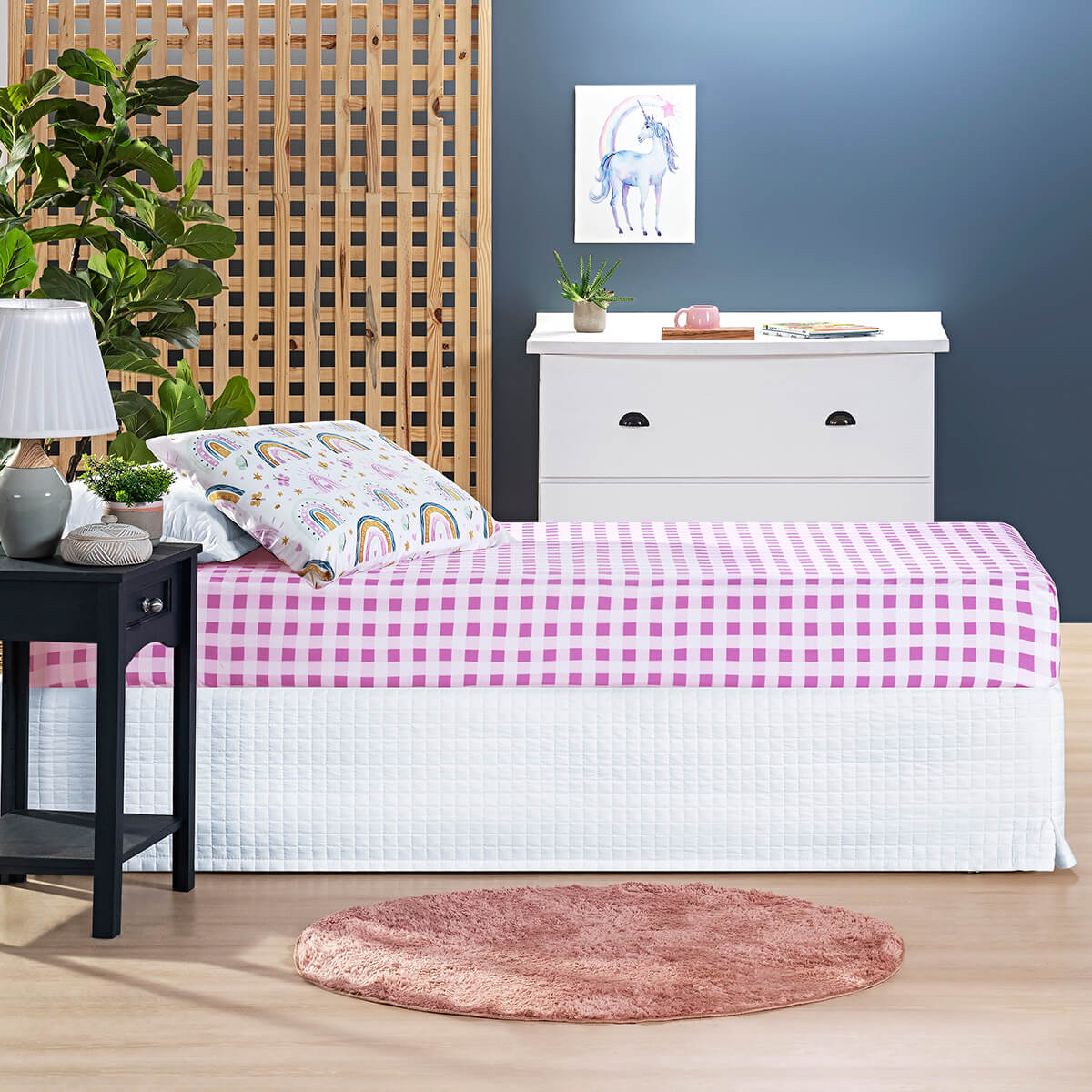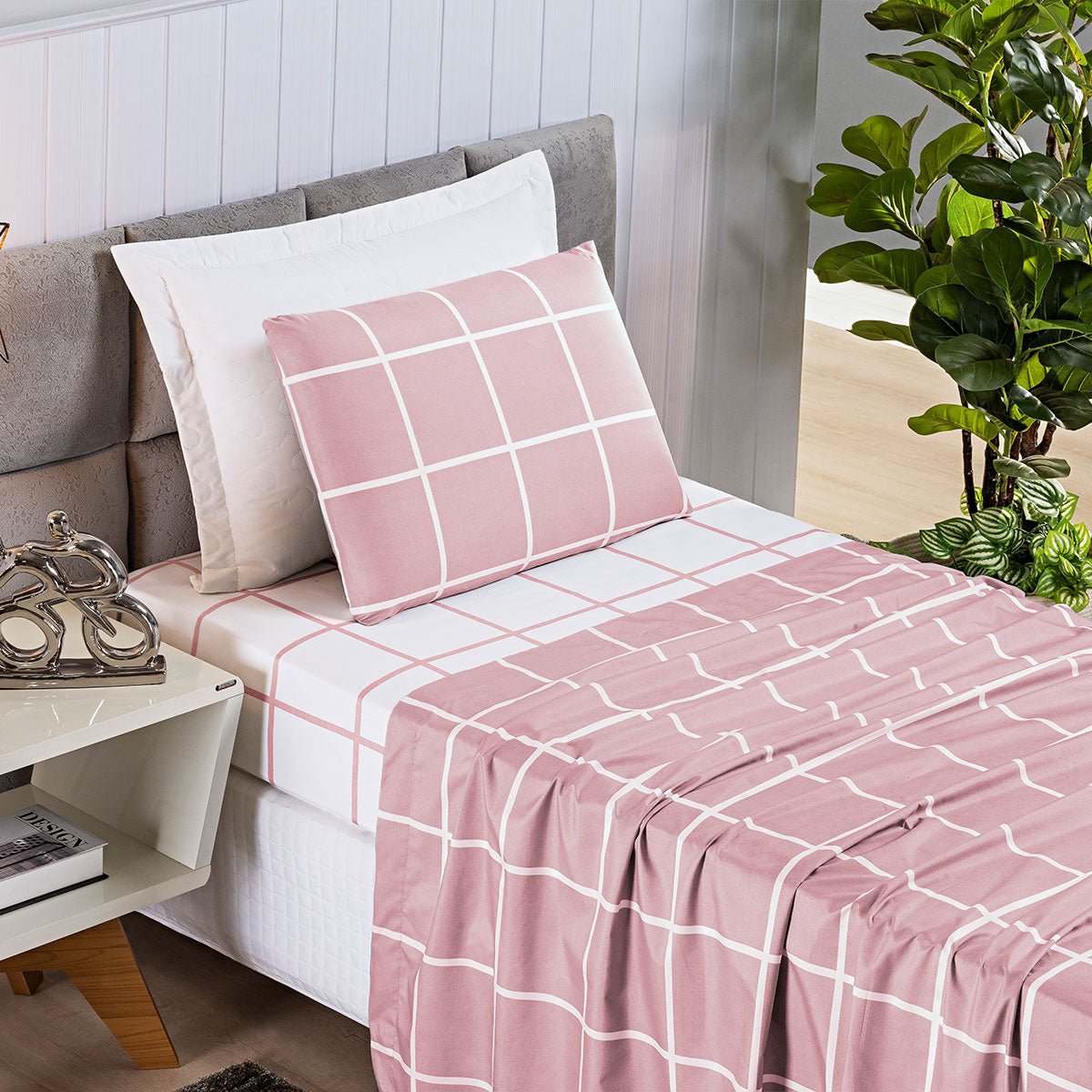 Jogo de Lençol Solteiro Austin 2 Peças Estilo Moderno e Prático - RosaUm toque de design para a cama de solteiro. Jogo de Lençol Austin 2 peças com estampa quadriculada moderna e o conforto do tecido 200 fios. Ideal para o dia a dia. 1 Lençol c/ elástico de 1,88m x 88cm x 30cm de alt.1...SOLTEIRO a partir de