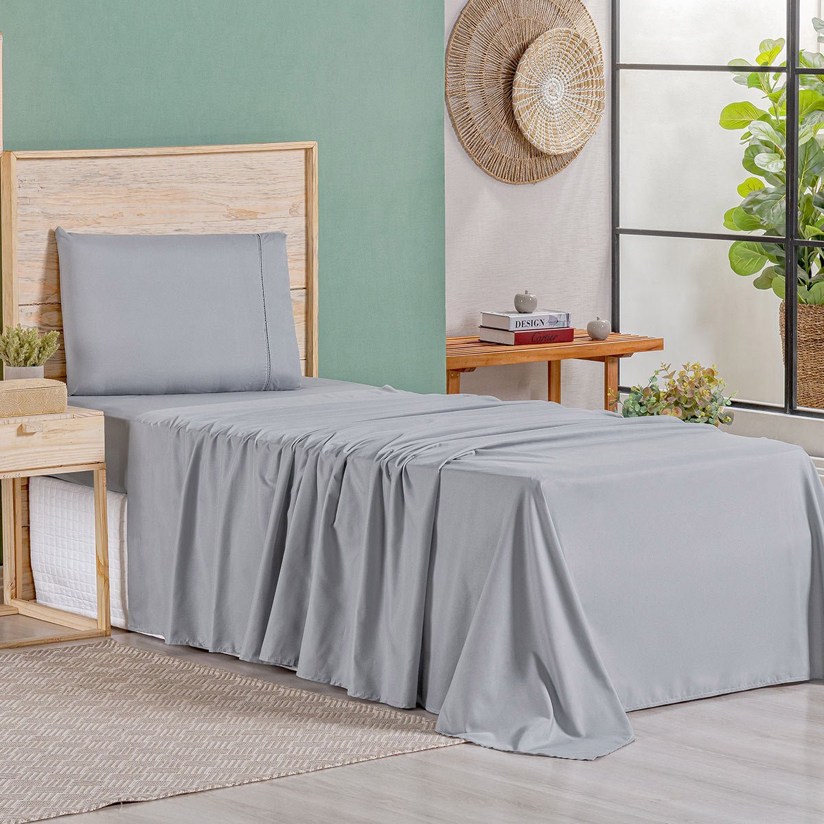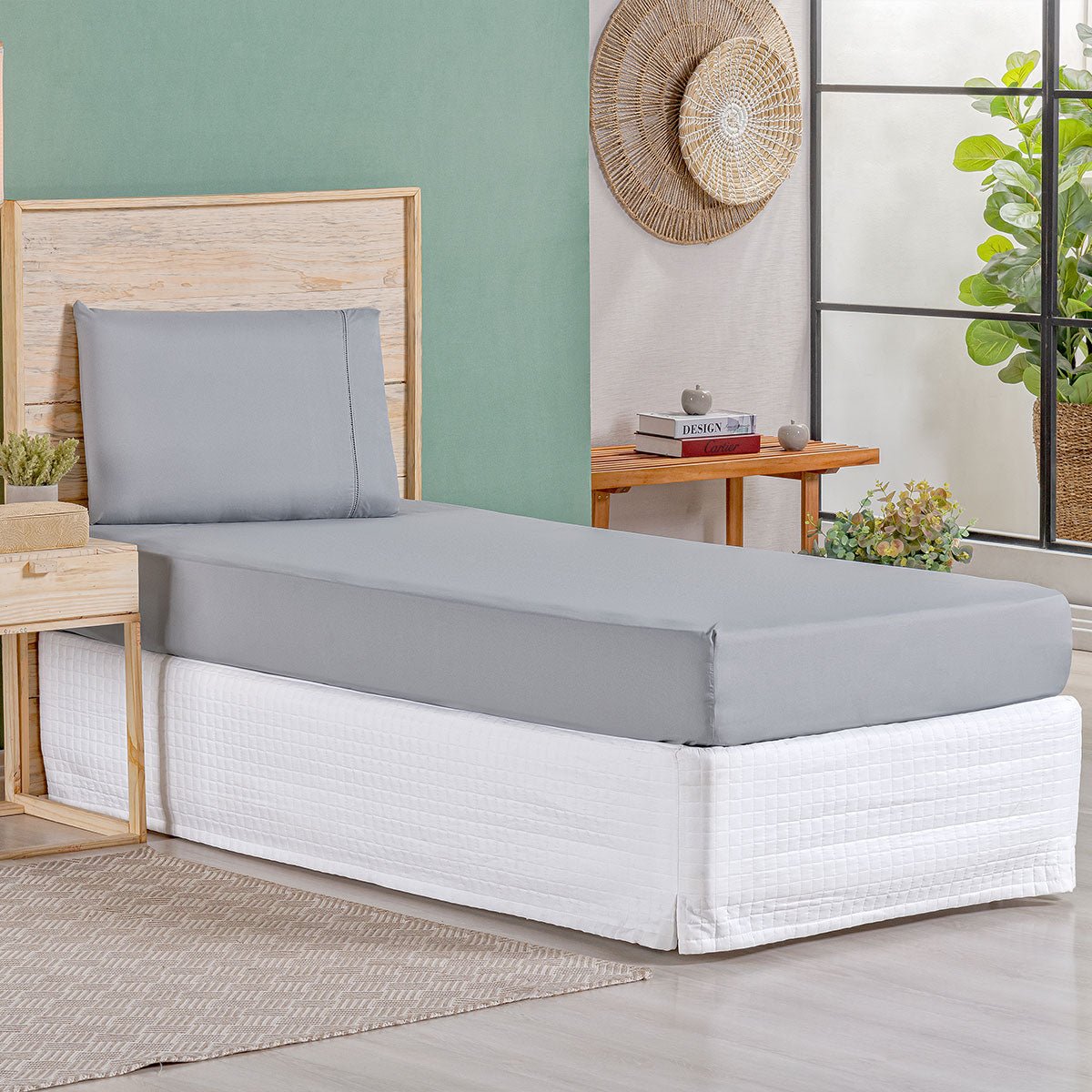 Jogo de Lençol Solteiro Camilly 400 Fios Elegância Minimalista 2 Peças - Cinza400 FiosMais VendidosElegância e sobriedade para sua cama. Jogo de Lençol Camilly com cores neutras, toque macio e o charmoso acabamento em ponto palito. Compre online! 1 Lençol com Elástico 1,88m x 0,88m x 0,30m1 Fronha 70cm x 50 cm Composição:Tecido: 100% Poliéster | Percal 400...SOLTEIRO a partir de