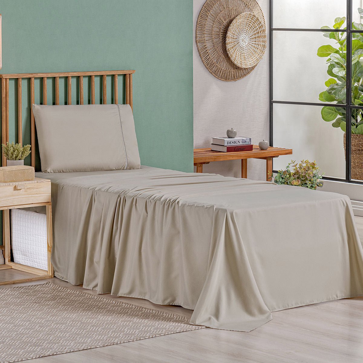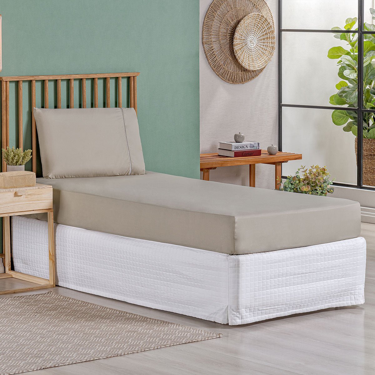 Jogo de Lençol Solteiro Camilly 400 Fios Elegância Minimalista 2 Peças - Avelã400 FiosMais VendidosElegância e sobriedade para sua cama. Jogo de Lençol Camilly com cores neutras, toque macio e o charmoso acabamento em ponto palito. Compre online! 1 Lençol com Elástico 1,88m x 0,88m x 0,30m1 Fronha 70cm x 50 cm Composição:Tecido: 100% Poliéster | Percal 400...SOLTEIRO a partir de