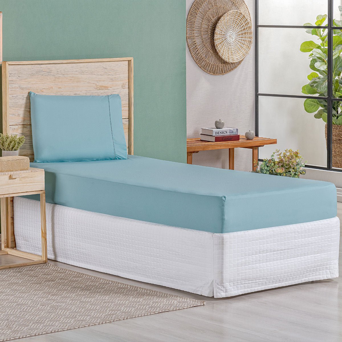 Jogo de Lençol Solteiro Essência 3 Peças 480 Fios Sense - Azure480 FiosVianelliSenseConforto que você sente no primeiro toque! O Jogo de Cama Essência Solteiro combina a qualidade do Percal com a tecnologia Sense da Vianelli, criando um tecido 480 fios com toque microaveludado tipo pêssego de maciez imediata e visual refinado no dia a dia....SOLTEIRO a partir de