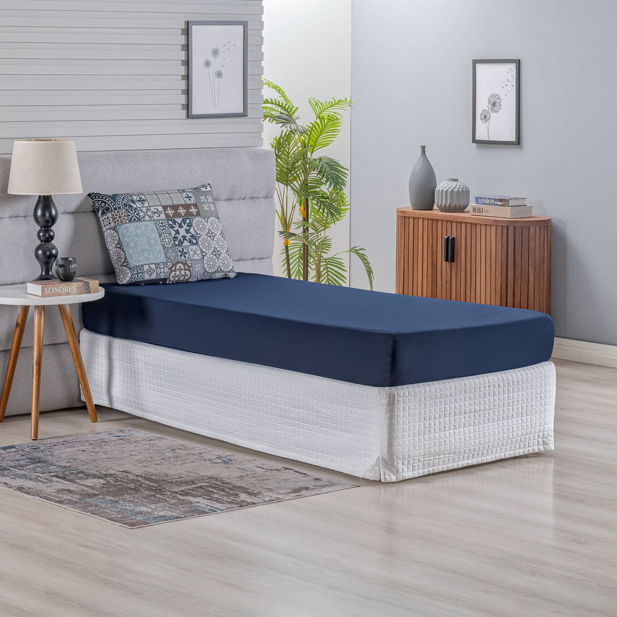 Jogo de Lençol Emilly Solteiro Elegância em Cores Vivas 3 Peças - Marinho400 FiosCama de solteiro completa e cheia de personalidade. Jogo de Lençol Emilly 3 peças com cores que não desbotam e o elegante acabamento em ponto palito. 1 Lençol de Cima 2,45m x 1,50m1 Lençol c/elástico na volta toda de 1,88m x 0,88m x 0,30m1...SOLTEIRO a partir de
