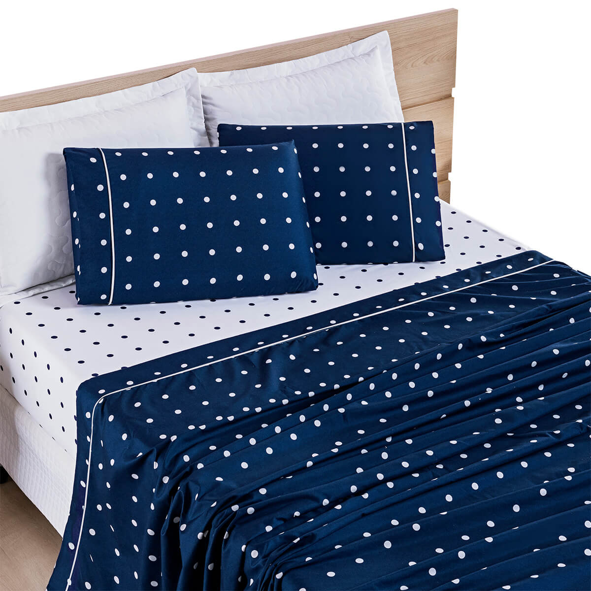 Jogo de Lençol Solteiro Petit Poá: O Clássico com um Toque de Design - MarinhoToque MacioO charme atemporal do poá para sua cama de solteiro. Jogo de Lençol 3 peças com um elegante detalhe de acabamento e o conforto do tecido 200 fios. 01 Lençol de cima 2,40m x 1,50m01 Lençol de baixo com elástico 1,88m x 88cm x...SOLTEIRO a partir de