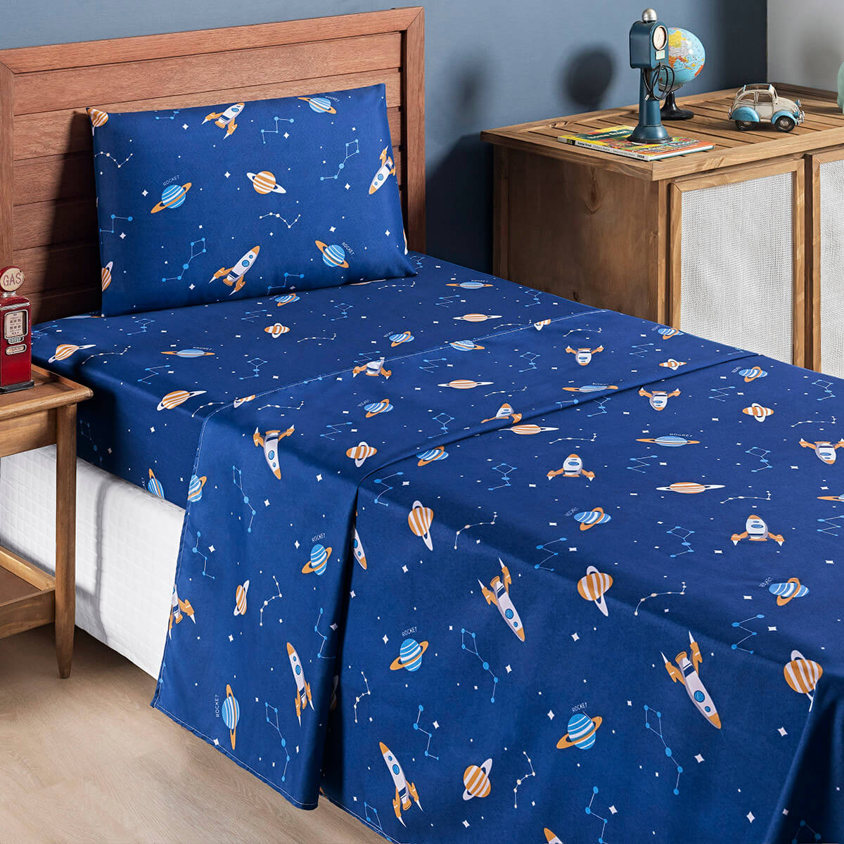 Jogo de Lençol Solteiro Tutti Kids 2 Peças 200 Fios Infantil - FoxyInfantilDupla FaceTutti Kids: o universo mágico dos pequenos. O Jogo de Lençol Solteiro Tutti Kids (2 peças) transforma a cama em palco de histórias com cores vivas e desenhos divertidos, no percal 200 fios de toque suave e rotina prática de cuidado. Visual caprichado e...SOLTEIRO a partir de