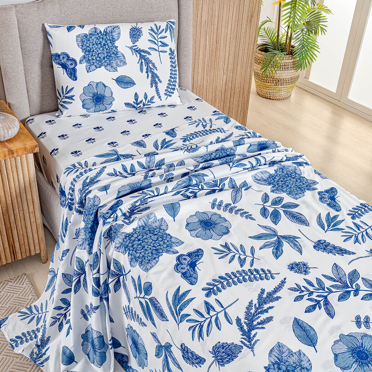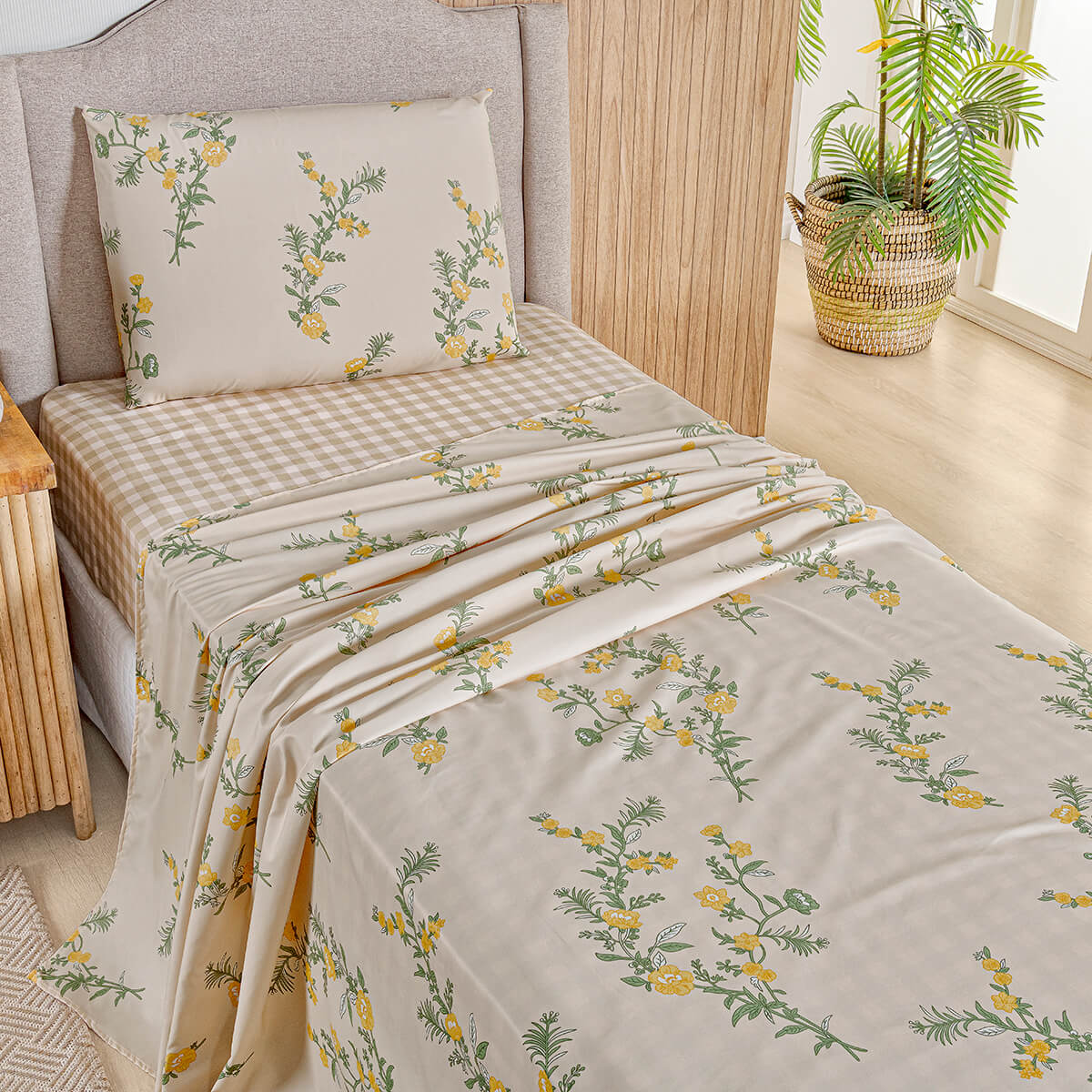Jogo de Lençol SOLTEIRO Completo Avere 3 Pçs - BothanicaToque MacioA experiência floral completa para sua cama solteiro. Jogo de Lençol Avere 3 peças com estampa delicada no lençol de cima e fronhas. Sofisticação e toque suave. 01 Lençol de Cima: 2,40m x 1,50m01 Lençol de Baixo com elástico: 1,88m x 88cm x 30cm01...SOLTEIRO a partir de