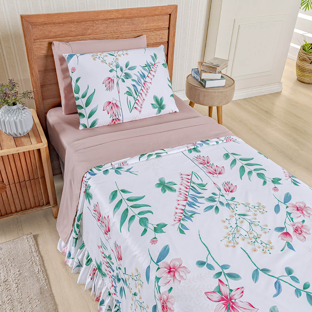 Jogo de Lençol Solteiro Avere 2 Peças com Estampa Floral - BothanicaToque MacioLeve a delicadeza das flores para a cama de solteiro. Jogo de Lençol Avere com fronhas estampadas, lençol liso e tecido 200 fios. Perfeito para o dia a dia. 01 Lençol de baixo c/ elástico p/ colchão 1,88m x 88cm x 30cm alt01 Fronha:...SOLTEIRO a partir de