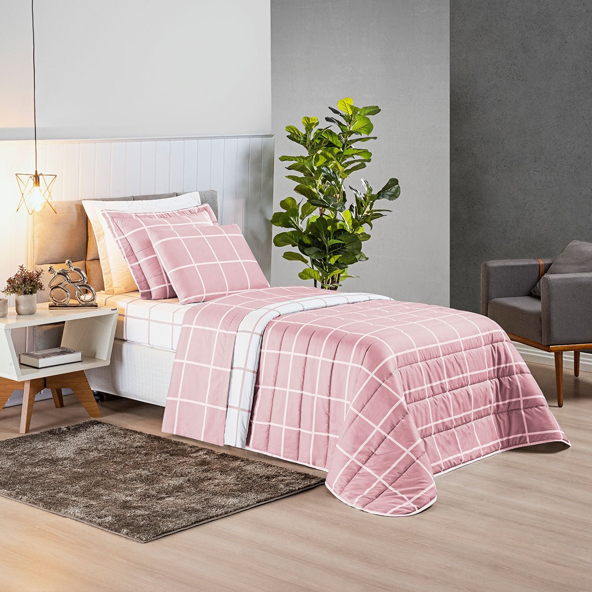 Cobre Leito Solteiro Austin em Matelassê 200 Fios e Aba Americana - RosaLançamentoTransforme seu quarto com o Cobre Leito Solteiro Austin. O charme do matelassê e a elegância da aba americana nos portas. Toque macio e estilo o ano todo. 1 Cobre leito dupla face 2,40m x 1,80m1 Porta travesseiros 80cm x 55cm Composição:Percal 200 Fios...SOLTEIRO a partir de