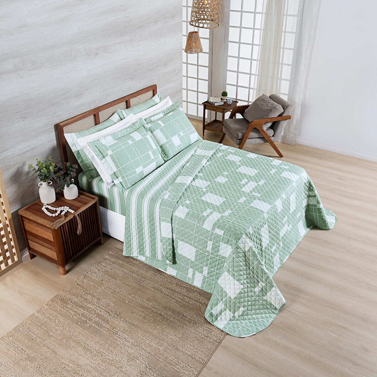 Cobre Leito Casal Arcos: Leve, Macio e Sempre Harmônico - Verde SuaveLançamentoToque MacioCom desenho de matelado em arcos e paleta neutra, o cobre leito Arcos traz leveza visual e conforto imediato. O enchimento super soft realça o volume sem pesar, deixando a cama sempre harmoniosa.1 Colcha 2,40m x 2,20m2 Porta Travesseiros 70cm x 50cm Composição:Tecido: Percal...CASAL a partir de