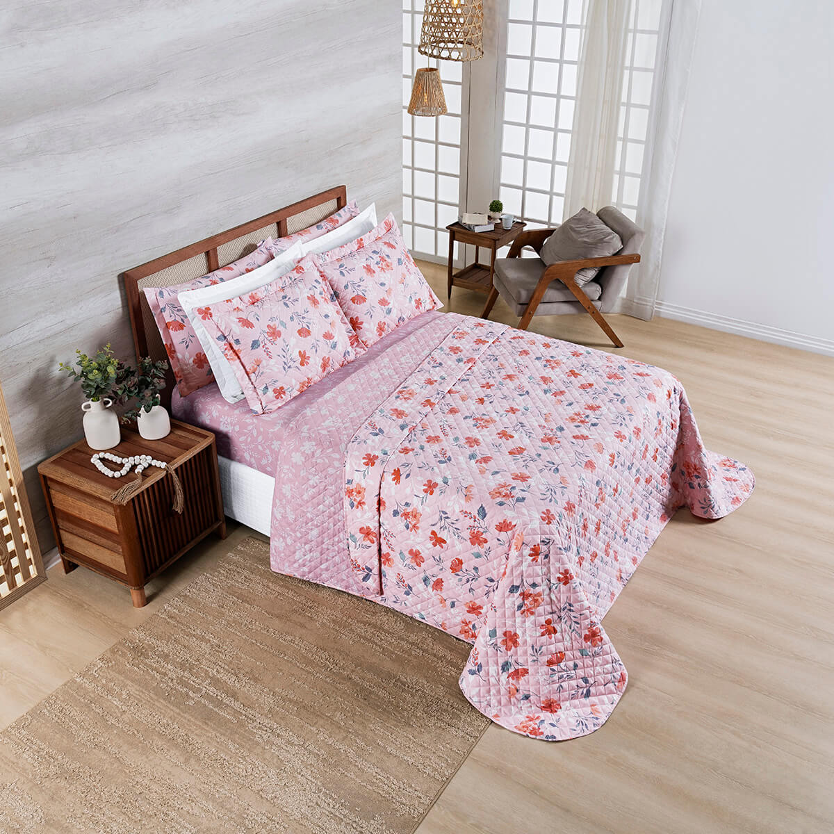 Cobre Leito Casal Afeto: Carinho Diário Sem Esforço - FloraLançamento400 FiosCarinho diário sem esforço: matelado leve e toque macio em 3 peças, com porta travesseiros em aba para um acabamento impecável. Fácil de lavar, seca rápido e mantém a cor.1 Cobre Leito dupla face 2,40m x 2,20m2 Porta Travesseiros com aba americana 80cm x...CASAL a partir de